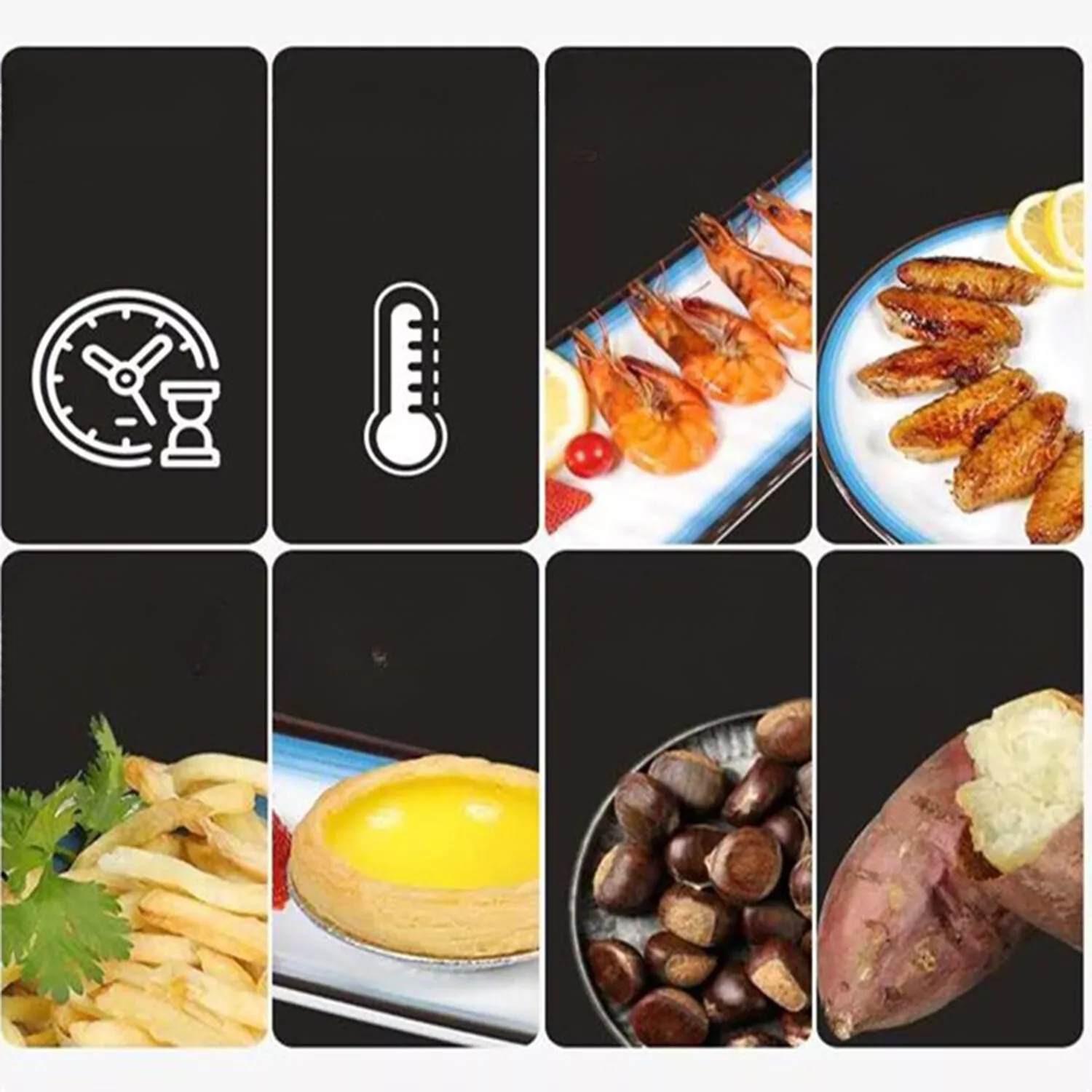 - Лише кілька дотиків дотичних кнопок, щоб швидко встановити температуру та час приготування в пристрої авіаперевізника та насолоджуватися здоровою їжею! Завдяки 4 програм, ви можете ще швидше насолоджуватися улюбленими стравами!