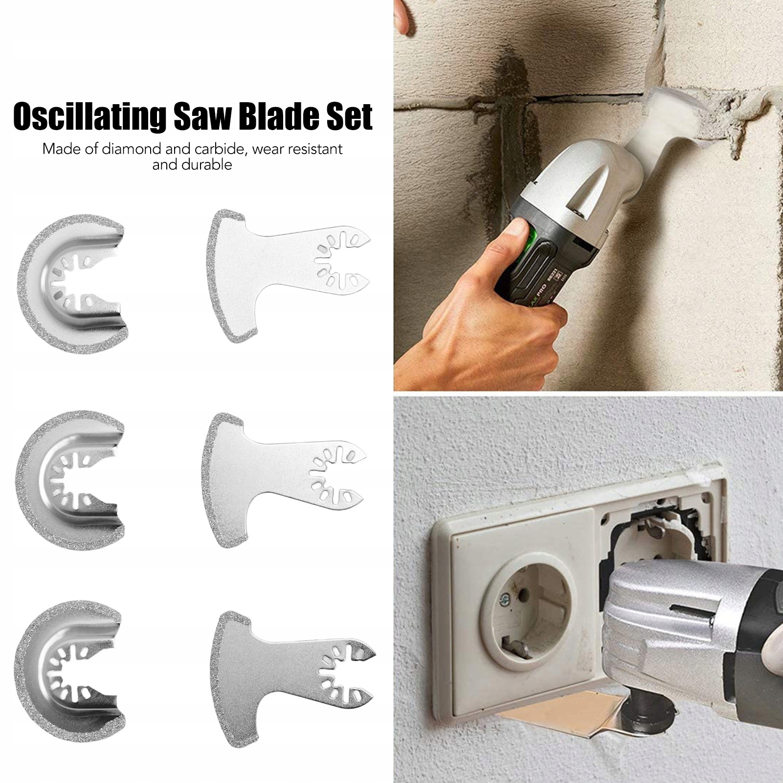 1. 6 шт. в 1 наборі: включає 6 шт. для осцилюючих твердосплавних лез, з 2 специфікаціями, придатних для різання та шліфування бетону, розчину, плитки, кераміки та цегляної кладки тощо.