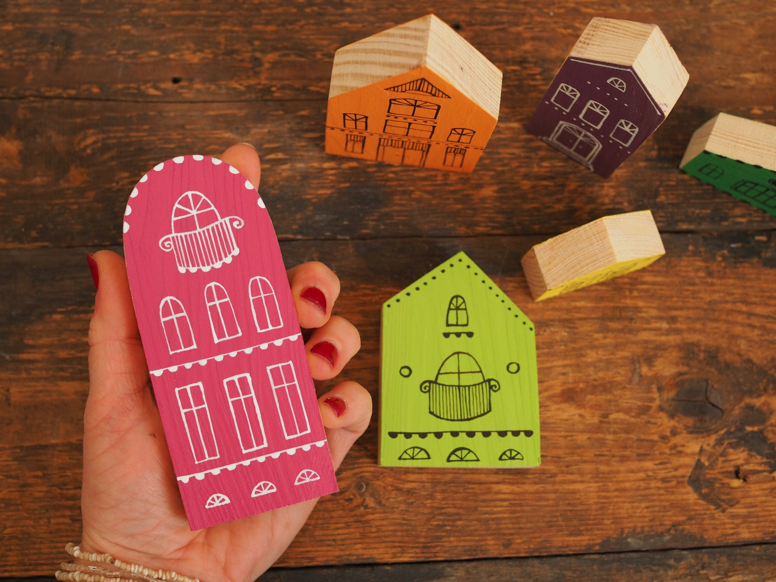 6шт дерев’яні будинки -розфарбована веселка