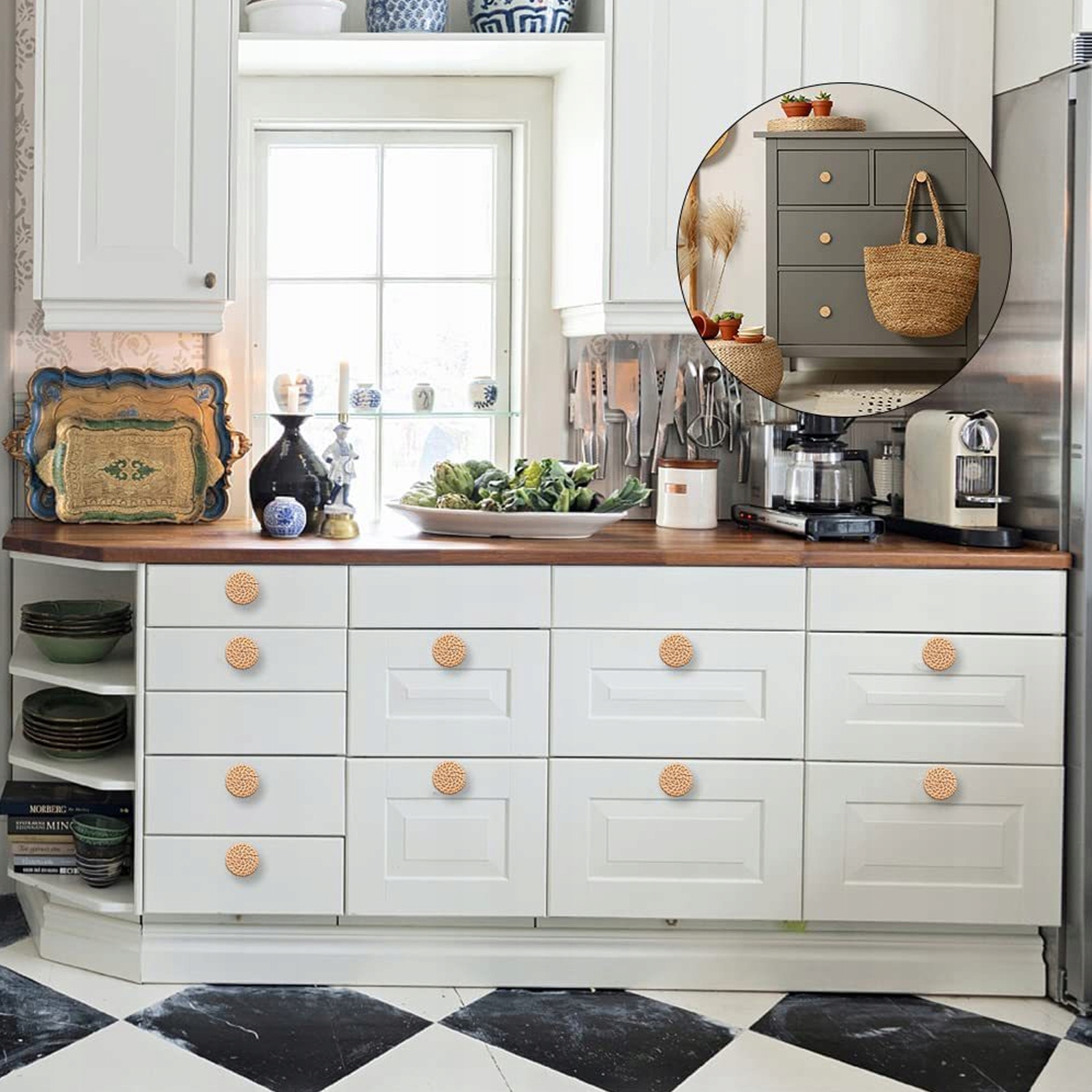1. РУЧКИ ДЛЯ ЯЩИКІВ З РОТАНГУ: ручки з ротанга ручної роботи можна комбінувати з дерев’яними меблями, щоб надати меблям найбільш популярного стилю.