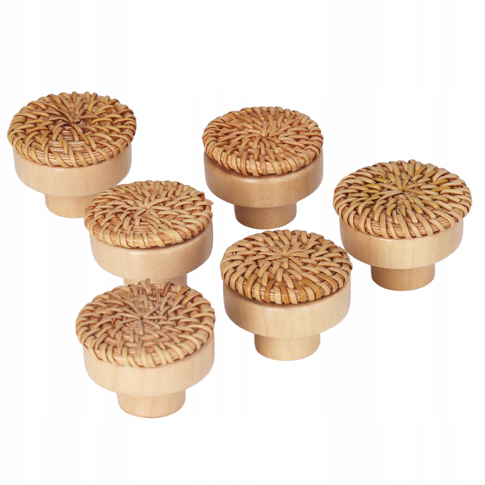 6 шт. Круглих ручок для шухляд із дерев’яного плетеного ротанга ручної роботи 4C