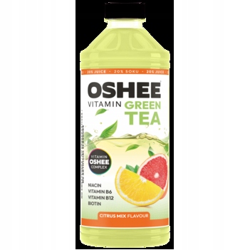 OSHEE Vitamin Green Tea Citrus - негазований чайний напій зі смаком свіжих цитрусових. Збагачений вітамінами. До складу входять в основному цинк, ніацин, біотин, вітамін В6 і В12. Не містить консервантів, штучних ароматизаторів, барвників, підсолоджувачів або глюкозо-фруктозного сиропу Інгредієнти: