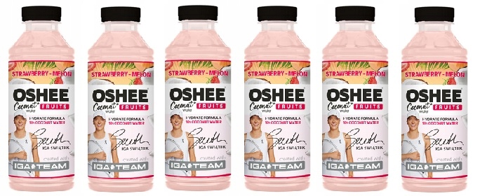 Вітамінна вода OSHEE з кокосовою водою зі смаком полуниці та дині — це унікальний продукт, створений OSHEE у тісній співпраці з Ігою Свёнтек та її персоналом з навчання. На додаток до природних зволожуючих властивостей, які забезпечуються додаванням кокосової води, продукт містить вітаміни та мінерали (вітамін С, вітамін В6, ніацин, біотин). Без консервантів, барвників та штучних ароматизаторів.