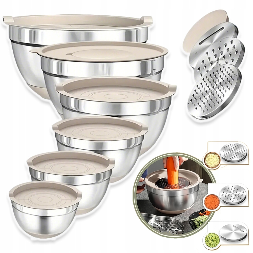 6X ЧАШ З КРИШКАМИ І ТЕРКАМИ СТАЛЕВИЙ НАБІР ЧАШІ НЕРЖАВІЮЧІ ГЕРМЕТИЧНІ
