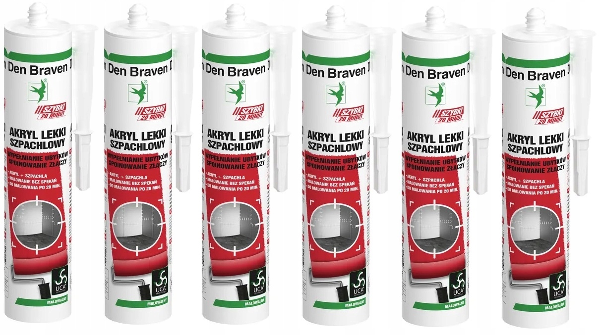 6x Den Braven Fast Akryl szpachlowy LEKKI 280ml BIAŁY