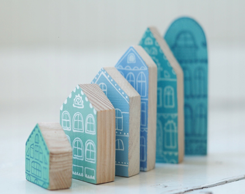 6x дерев'яні котеджі пофарбовані в блакитний