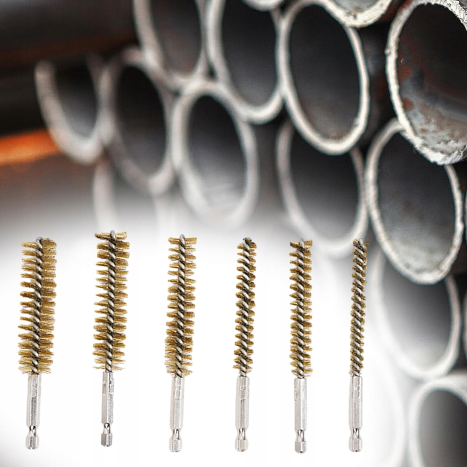 [Різний розмір]: 6 шт. трубчастих щіток мають різні розміри, наприклад, 8 мм, 10 мм, 12 мм, 15 мм, 17 мм, 19 мм, шестигранний хвостовик 1/4 дюйма.
