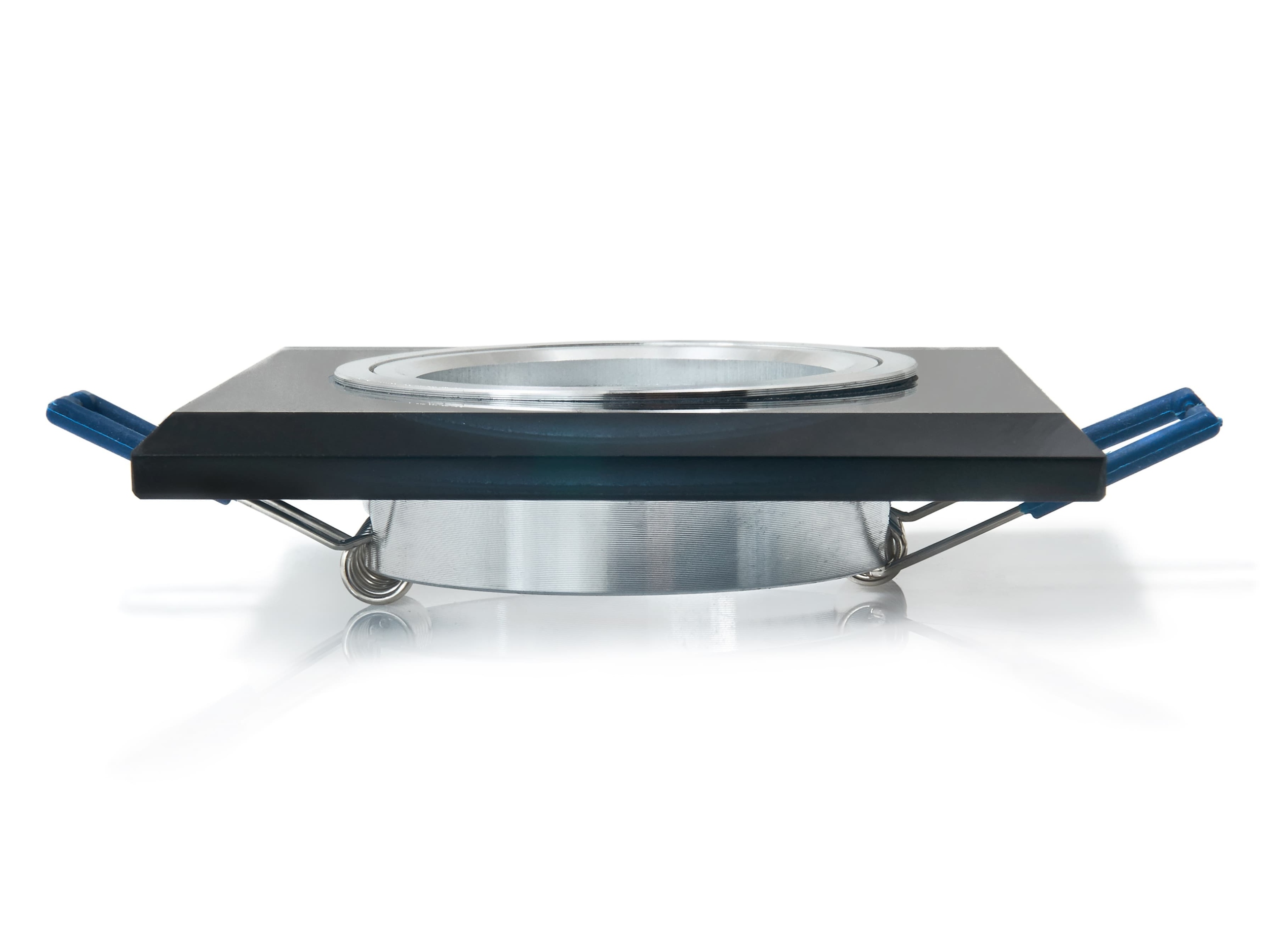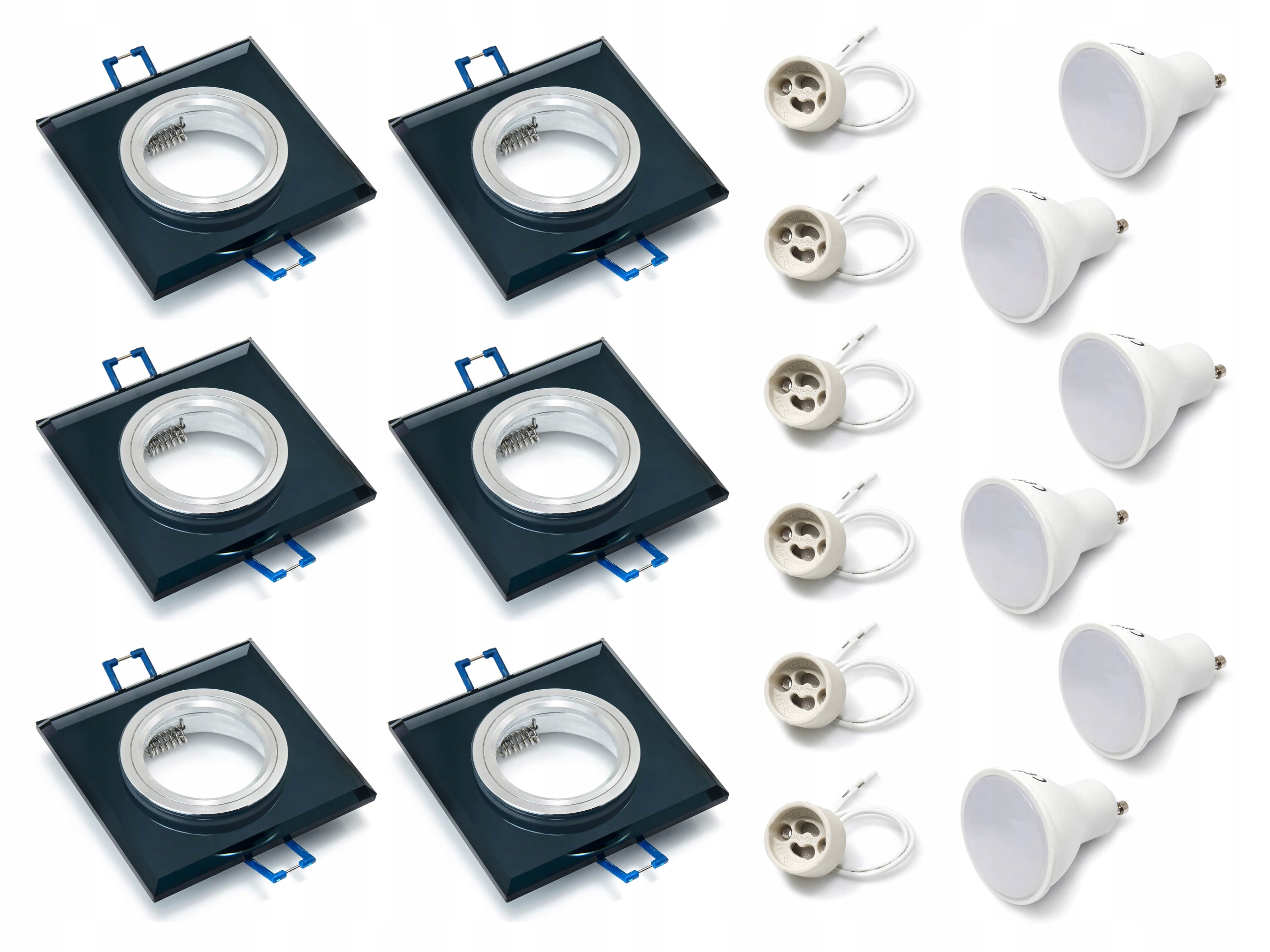 НАБІР 6x ГАЛОГЕННИХ ФІКСОВАНИХ СКЛЯНИХ СВІТЛІВНИКІВ ЧОРНИЙ КВАДРАТ + 6x 5W світлодіодних ламп GU10 + 6x GU10 ЦОДІЛ