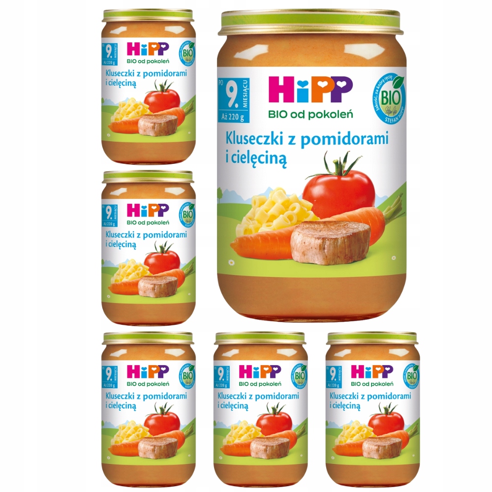 6x HiPP БІО обід ГАЛУШКИ З ПОМІДОРАМИ ТА ТЕЛЯТИНОЮ 220г після 9 місяця