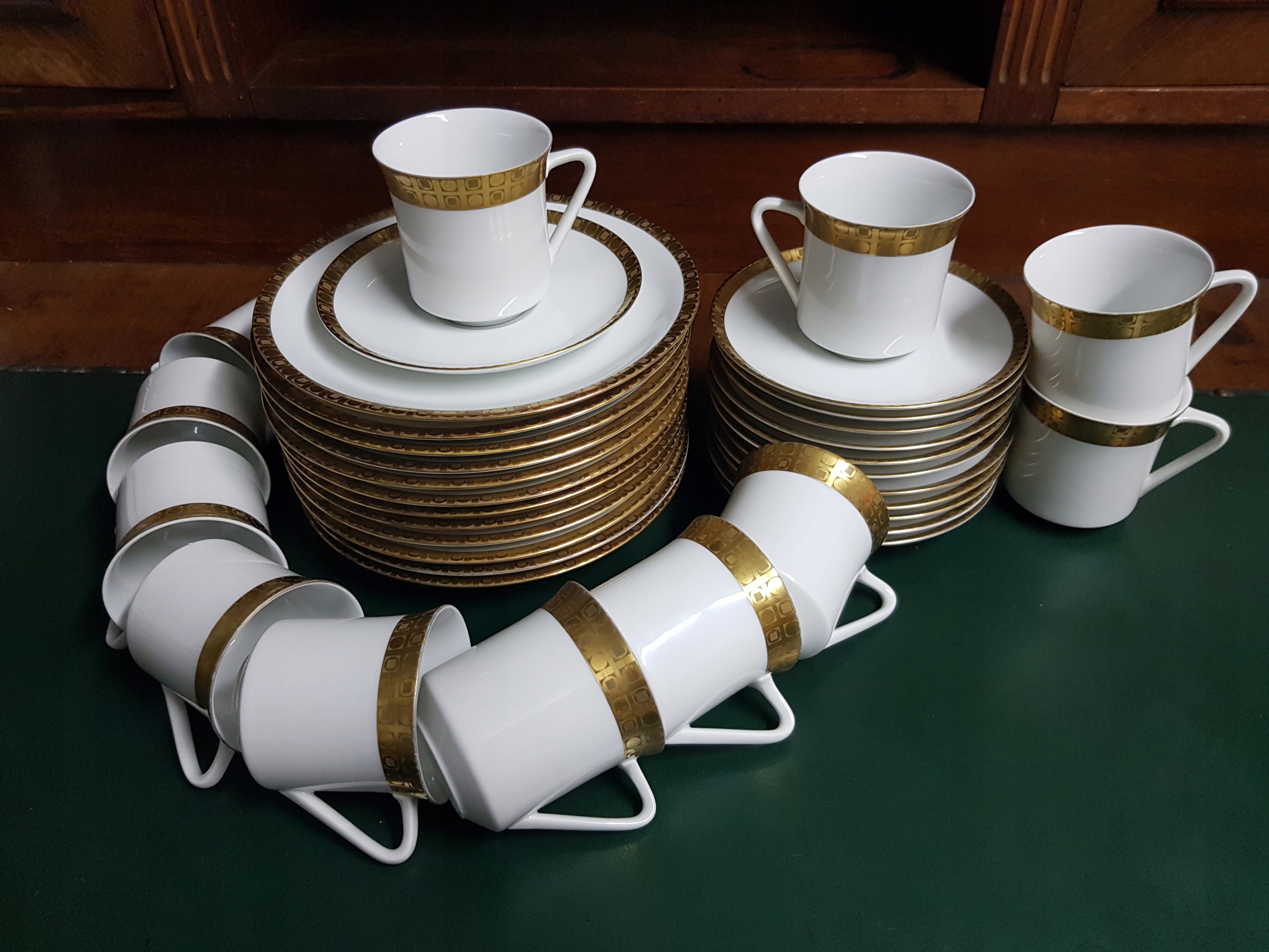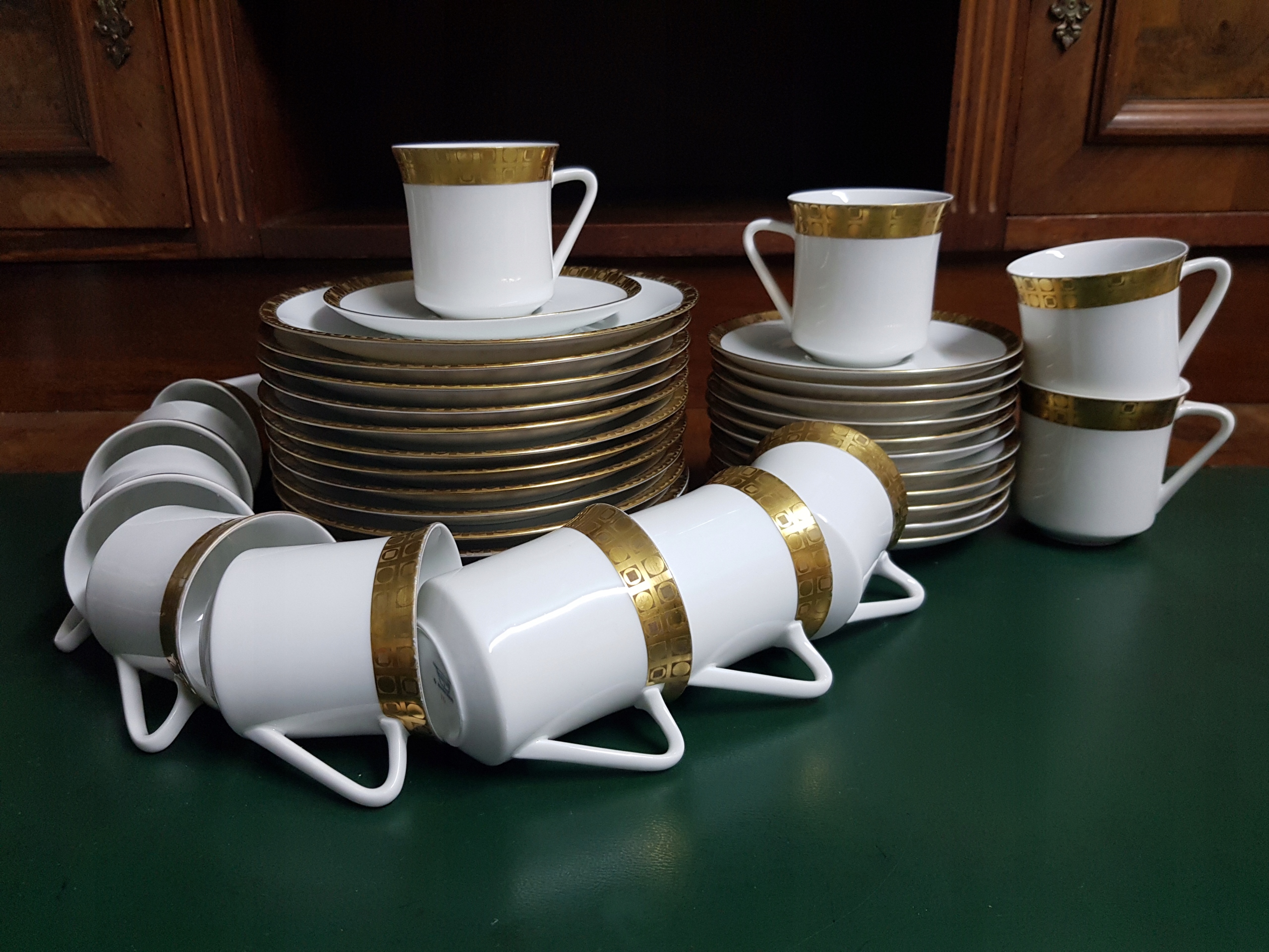 Предметом аукціону є 1 набір із 6 наборів для сніданку Thomas. У набір входить 6 чашок, 6 блюдець, 6 тарілок. Краї позолочені. Біла порцеляна. Типовий 1970-ті. В наявності 2 набори по 6 наборів. Ціна актуальна до 1 комплекту.