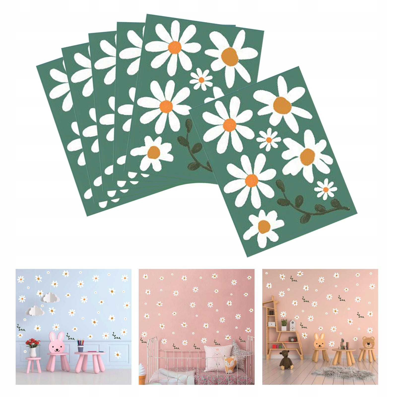 6x Naklejki ścienne z kwiatami stokrotki, odklej i przyklej naklejki ścienne Boho Ściana z kwiatów
