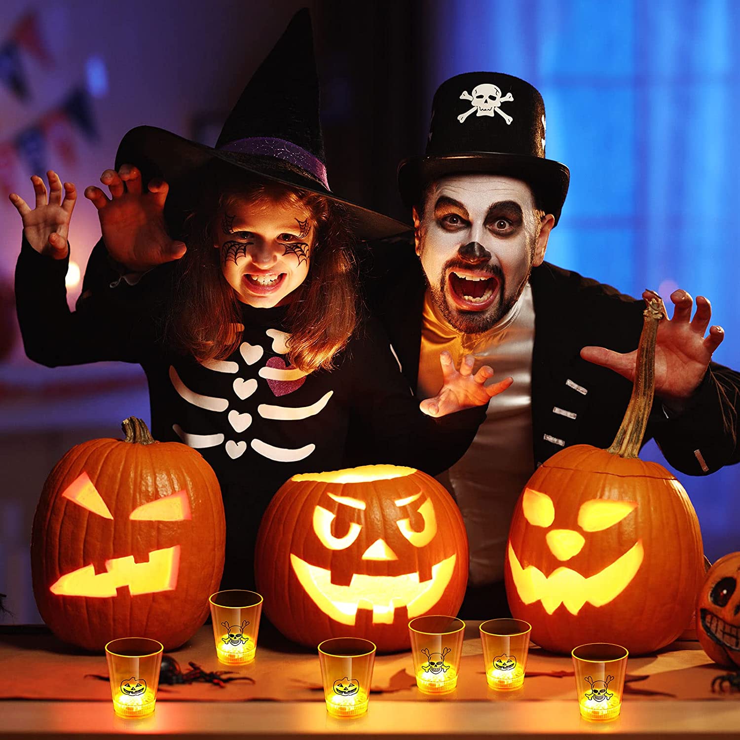 НАБІР З 6 СВІТЛОДІОДНИХ ОКАЛІВ З ГАРБУЗОМ ТА ЧЕРЕПОМ НА ХЕЛЛОВІН