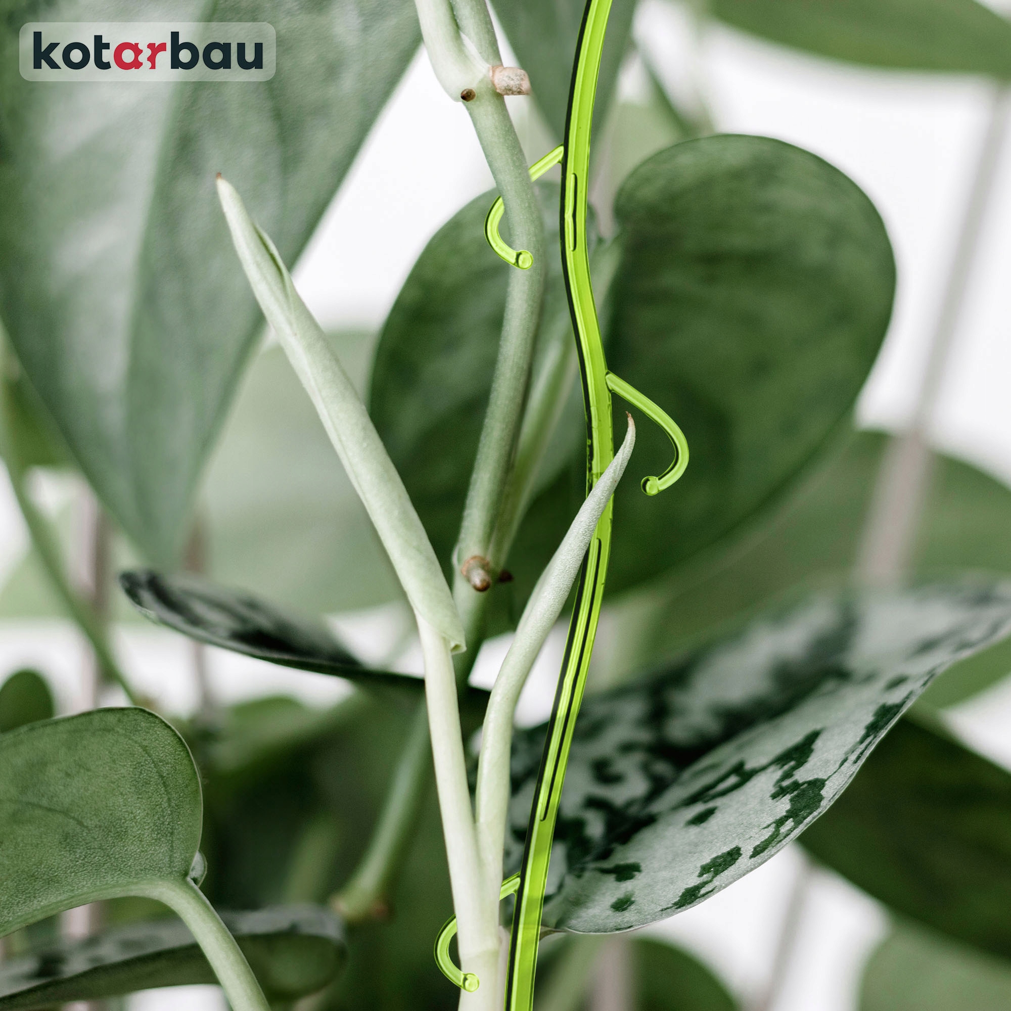 Квіткова опора зеленого кольору, тому вона практично непомітна і жодним чином не заважає рослині чи композиції. Він не порушує естетику квітів, а навіть підкреслює її завдяки своїй химерній формі, що імітує рослину.