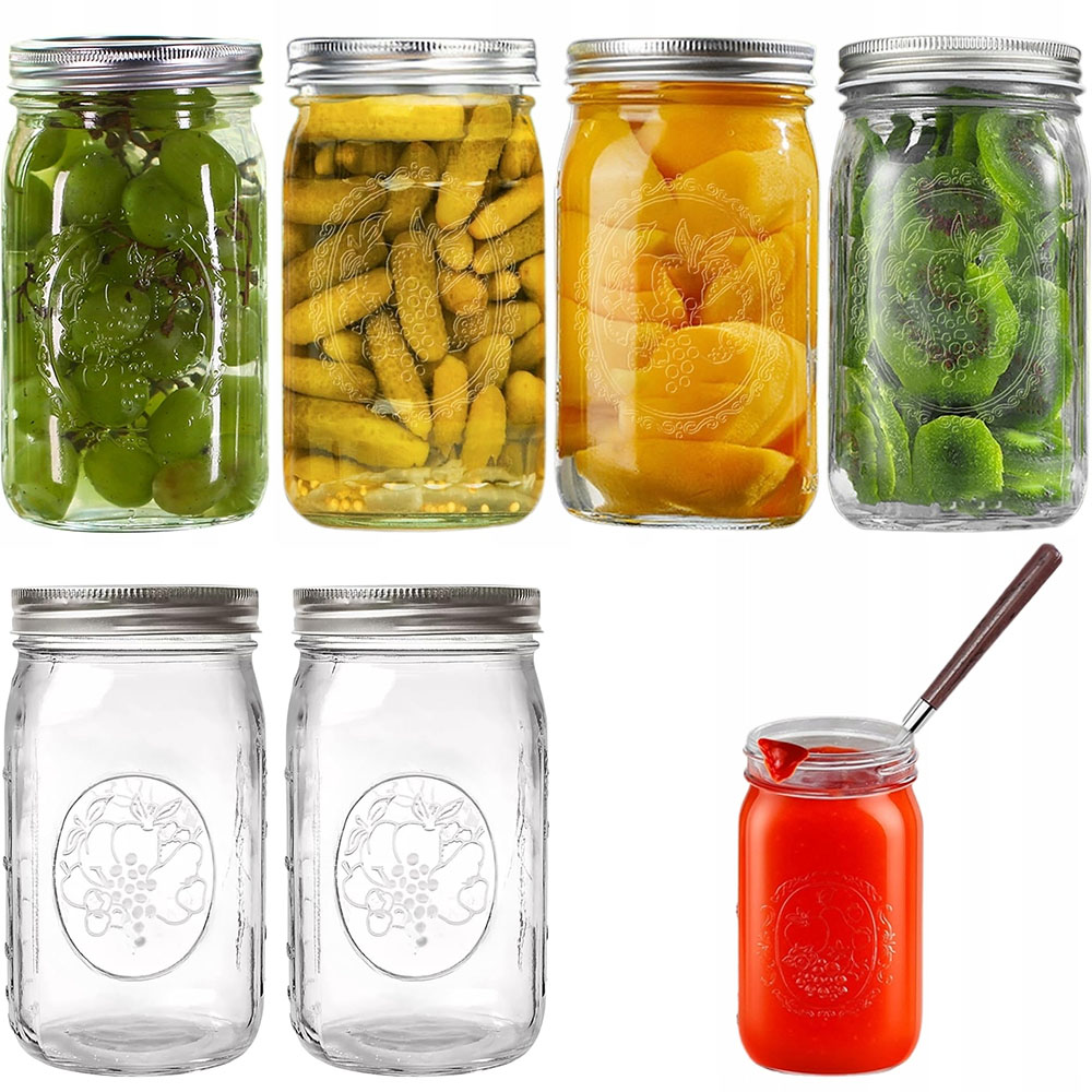 Кожна банка вміщує приблизно 470 мл (16 унцій). Набір із 6 предметів задовольняє різноманітні потреби - від зберігання кави, горіхів, спецій до створення домашніх десертів та прикрас.