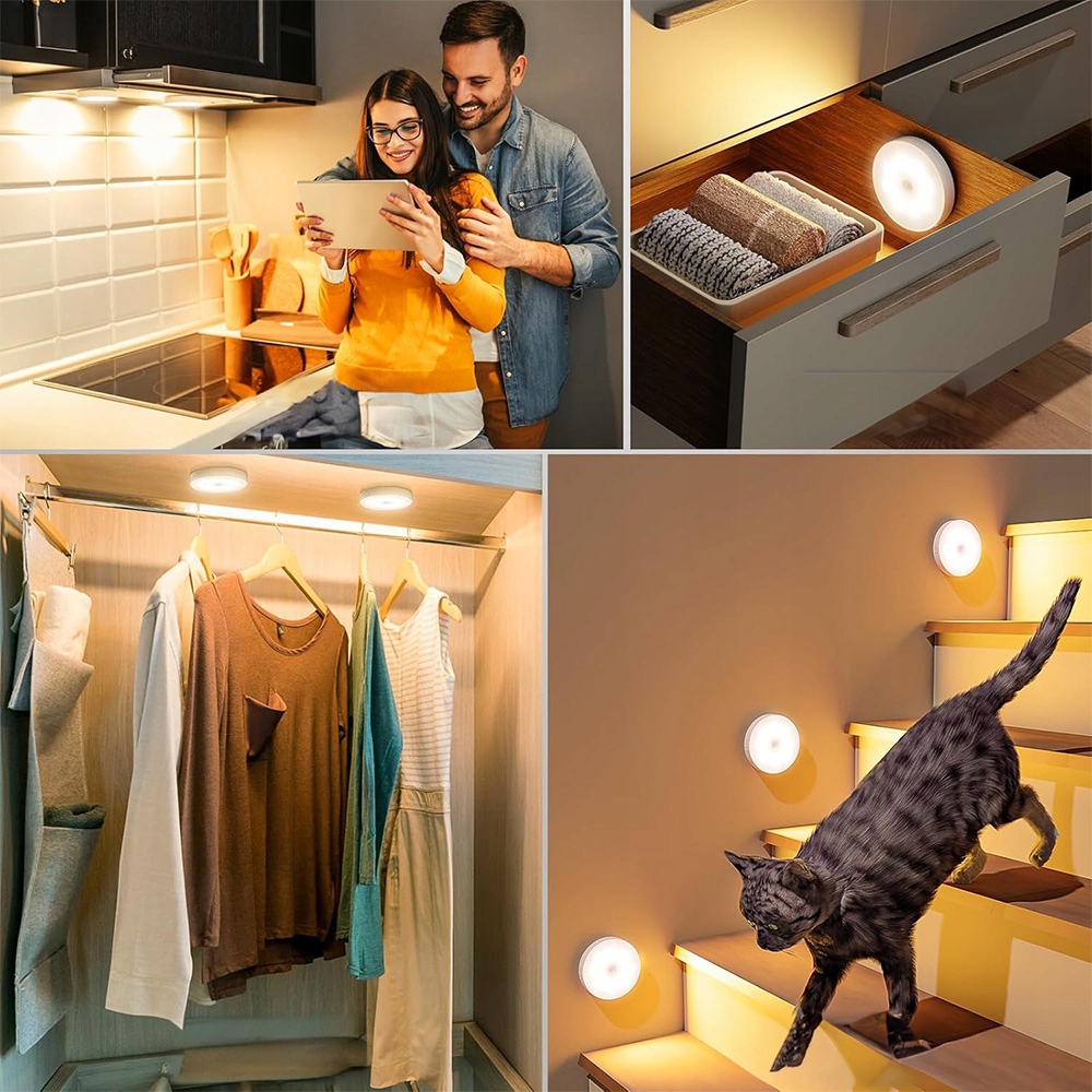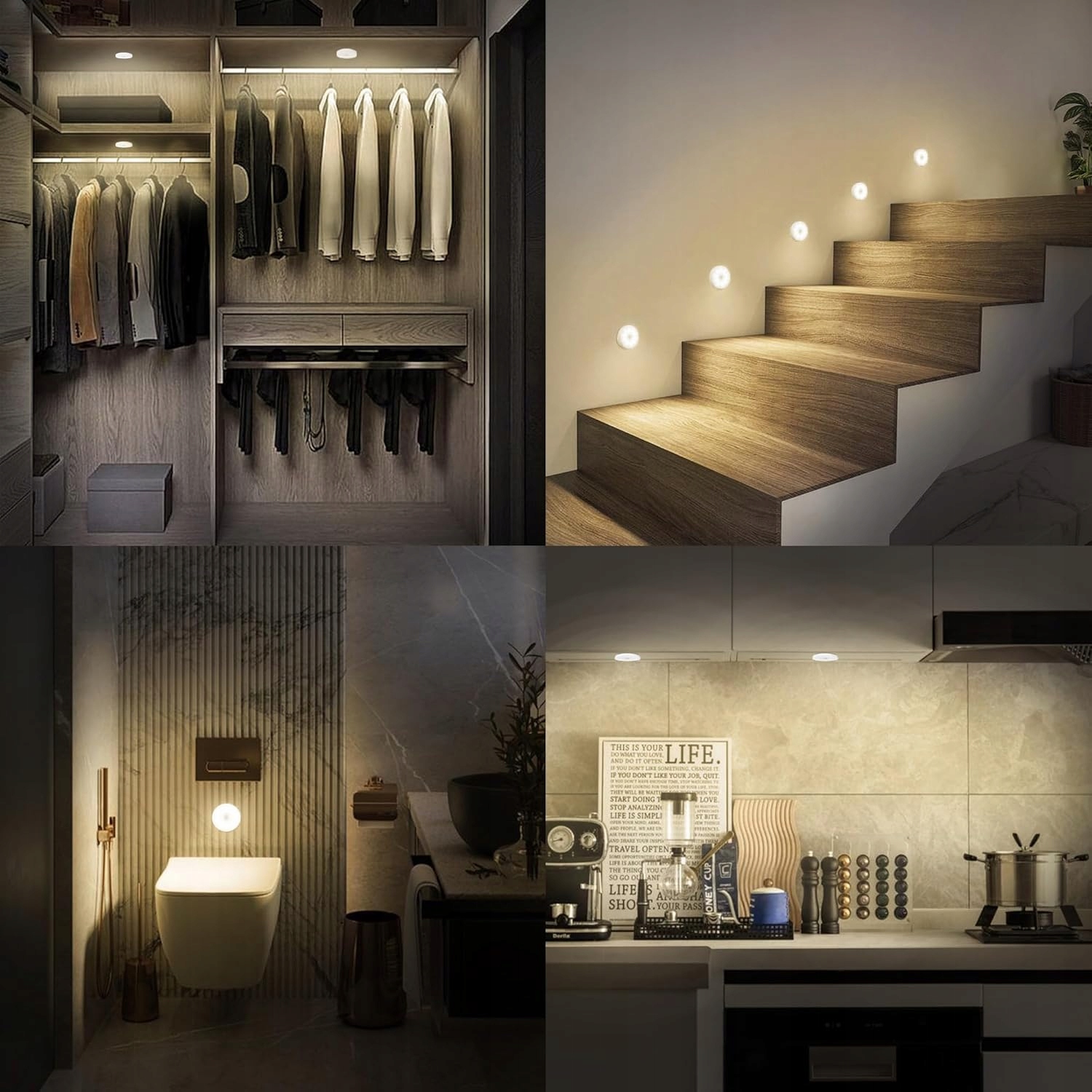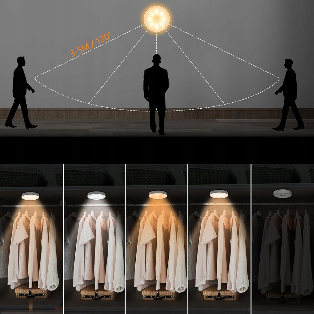 ✨✨- ідеально підходить для спалень, кухні, ящиків, шаф, полиць, полиць, сходів та багатьох інших застосувань. Він автоматично приєднається до темряви, коли рух виявляється в радіусі 3 м. Він вимкнеться автоматично через 20 секунд, коли руху не виявлено.