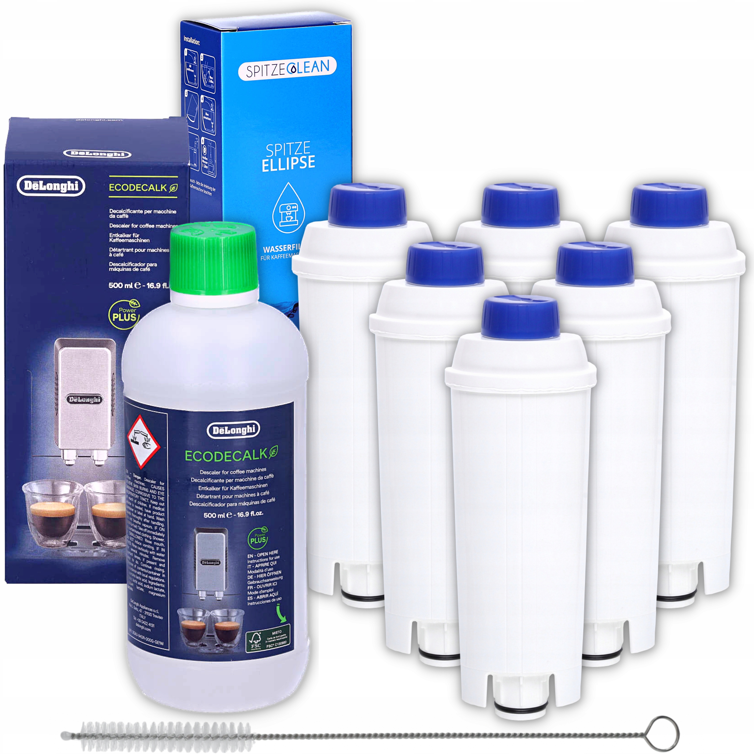 6x ВОДЯНИЙ ФІЛЬТР для DeLonghi + КОМПЛЕКТ засобу для видалення накипу