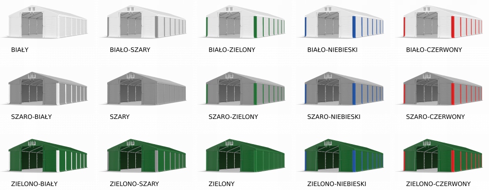 білий, біло-сірий, біло-зелений, біло-синій, біло-червоний, сіро-білий, сірий, сіро-зелений, сіро-блакитний, сіро-червоний, зелено-білий, зелено-сірий, зелений, зелений -синій, зелено-червоний