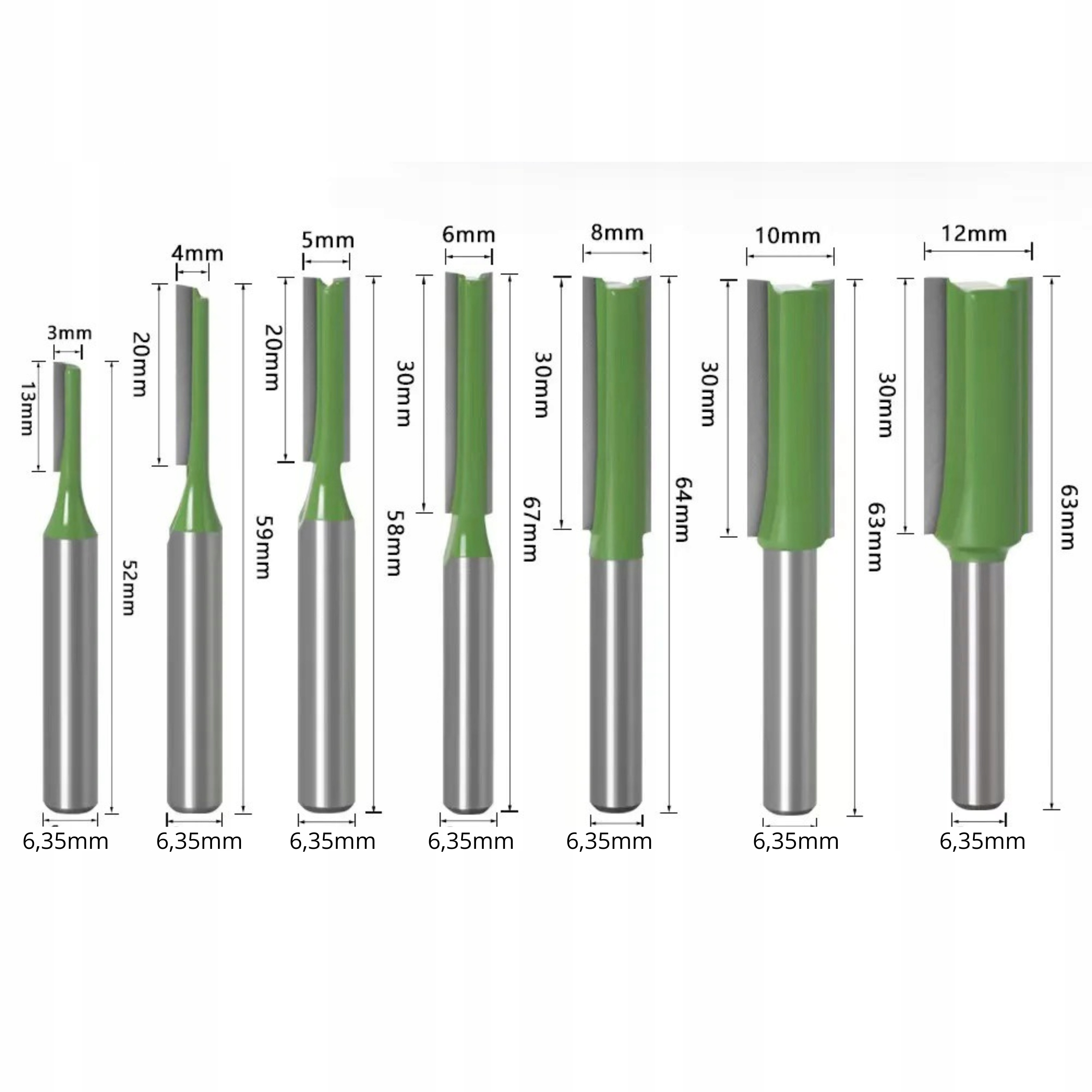 7 -кратний набір фрезерних дрилів для різання різання різання 6,35 мм