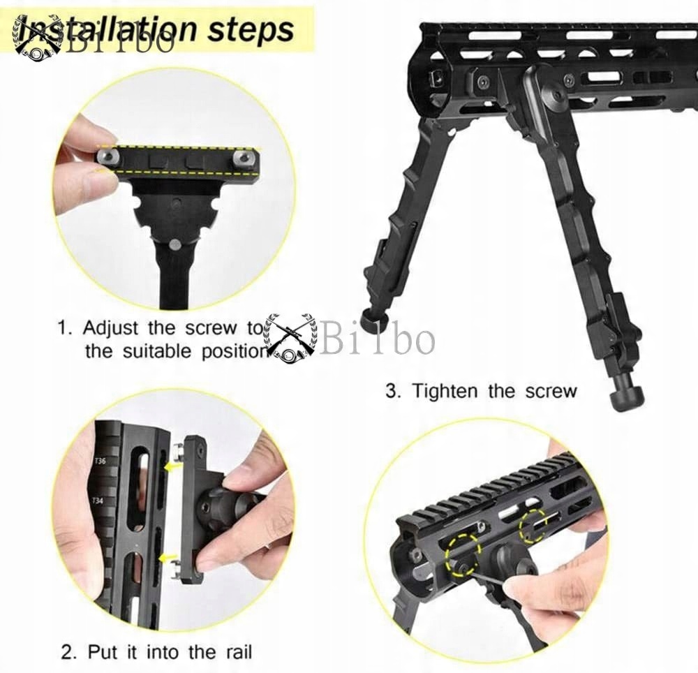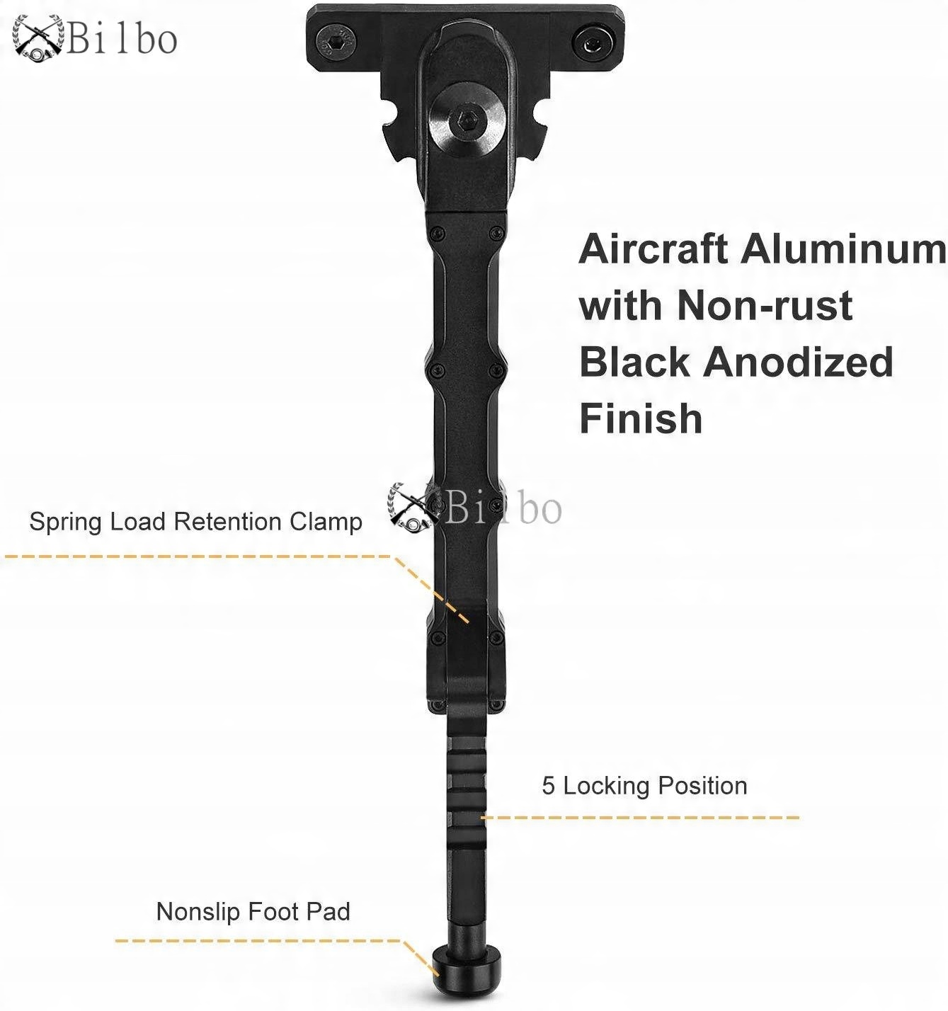 Виготовлено із загартованої сталі та алюмінію, анодованого чорного кольору, покриття з нержавіючої сталі , сошка гвинтівки міцна та легка.