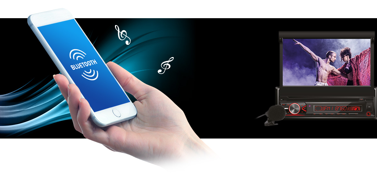 Радіо має вбудований BLUETOOTH, який дозволяє розмовляти під час водіння. Звук з телефону буде чути в динаміки, а вбудований мікрофон дозволить вільно розмовляти. Запропонована радіостанція імпортує контакти з телефонної книги телефону. Функція Bluetooth також дозволяє передавати музичні файли, наприклад, зі смартфона.