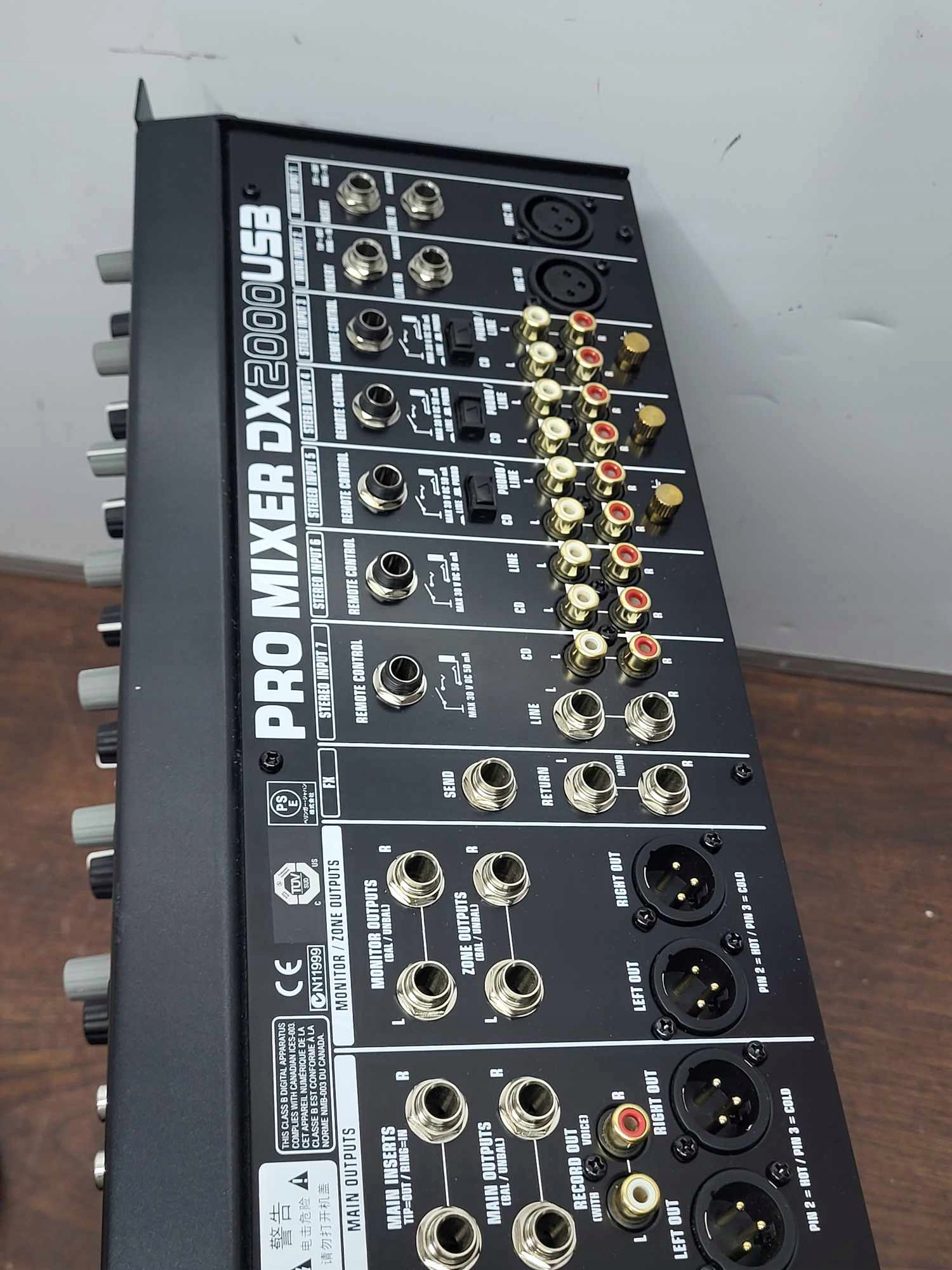 - 5 подвійних стереовходів плюс 2 монофонічних мікрофонних/лінійних каналів із низьким рівнем шуму мікрофонні попередні підсилювачі, фантомне живлення, регулятор посилення та світлодіодні індикатори.