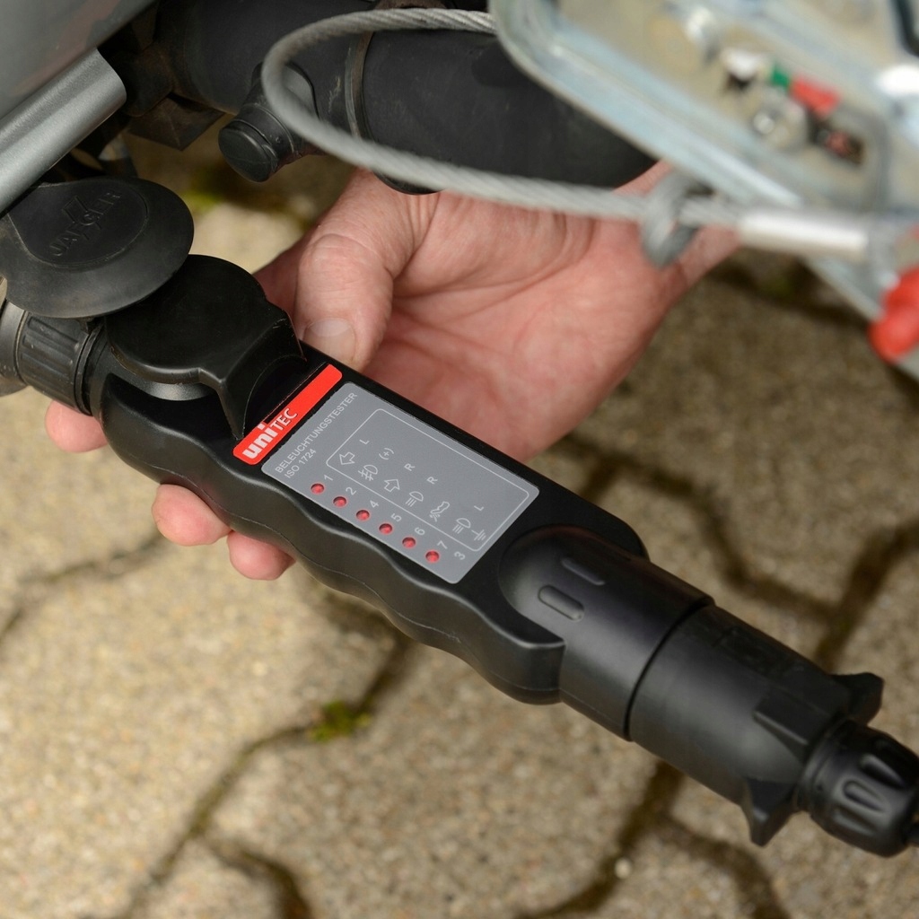 Дозволяє швидко перевірити систему освітлення причепів і транспортних засобів. Визначає проблеми, пов'язані з неправильною роботою освітлення. Ідентифікація проблеми за допомогою світлодіодного дисплея.