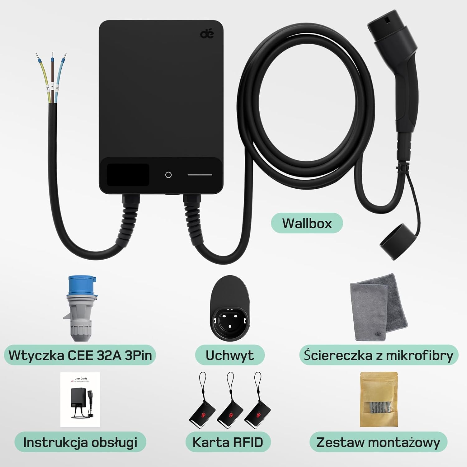 ✔ Wallbox 7,4 кВт із кабелем типу 2 (7,5 м)