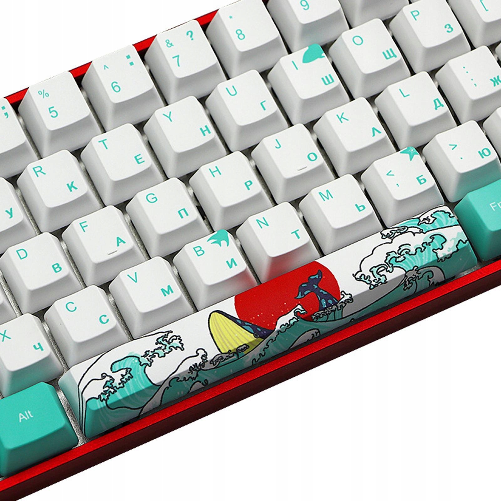 Розроблено зі стандартним розташуванням нижнього ряду (125x7 і 625x1), щоб відповідати більшості механічних клавіатур Товщина клавіатури становить приблизно 14 мм. довговічність і відмінне відчуття набору тексту