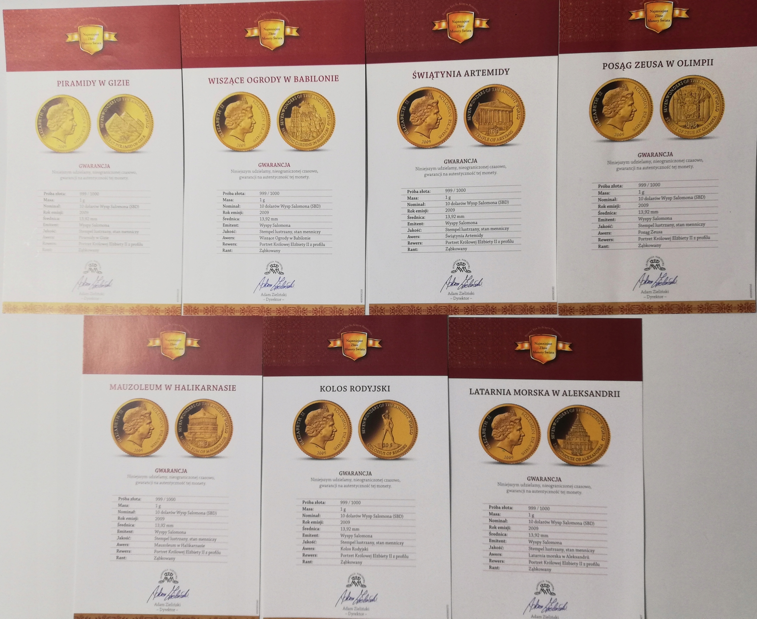 7 x GOLD Набір із 7 ЧУДЕС СВІТУ Найдрібніші монети 7 грам Au999 + касета + збільшувальне скло