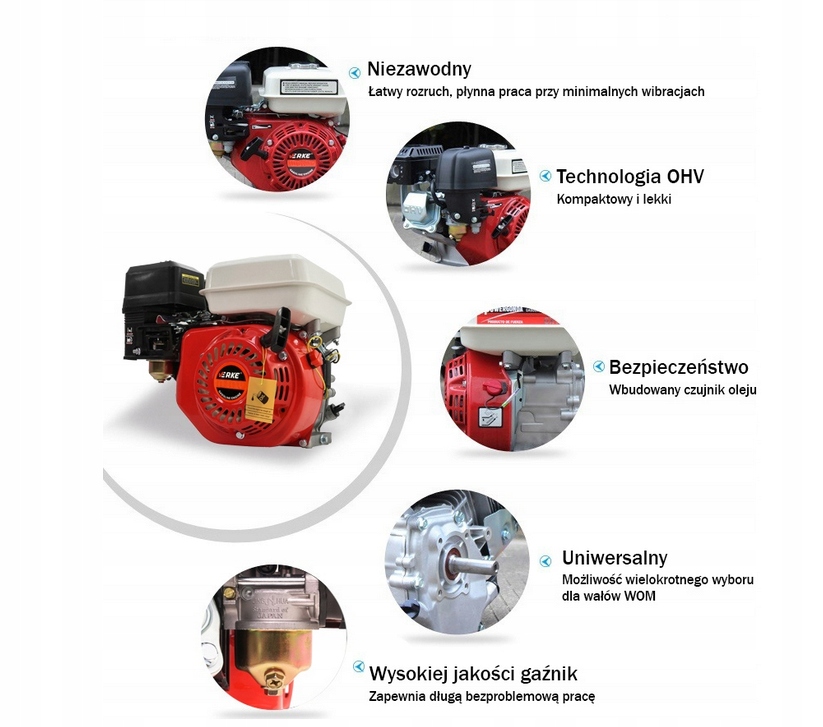 Двигун виготовлено з високоякісних матеріалів за технологією OHV. Двигуни OHV легкі та економічні з оптимізованою витратою палива.