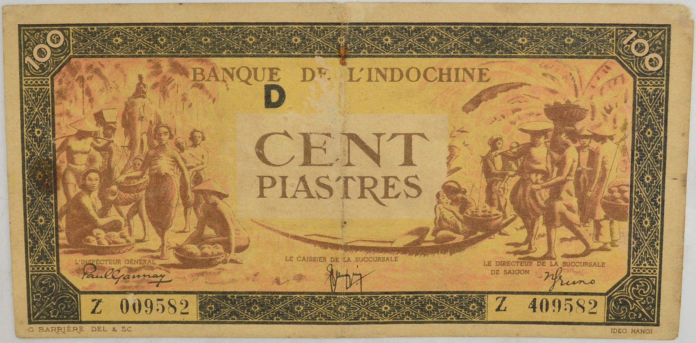 7.aj.Indochiny Fran., 100 Piastrów 1942-1945,St.2-/3+