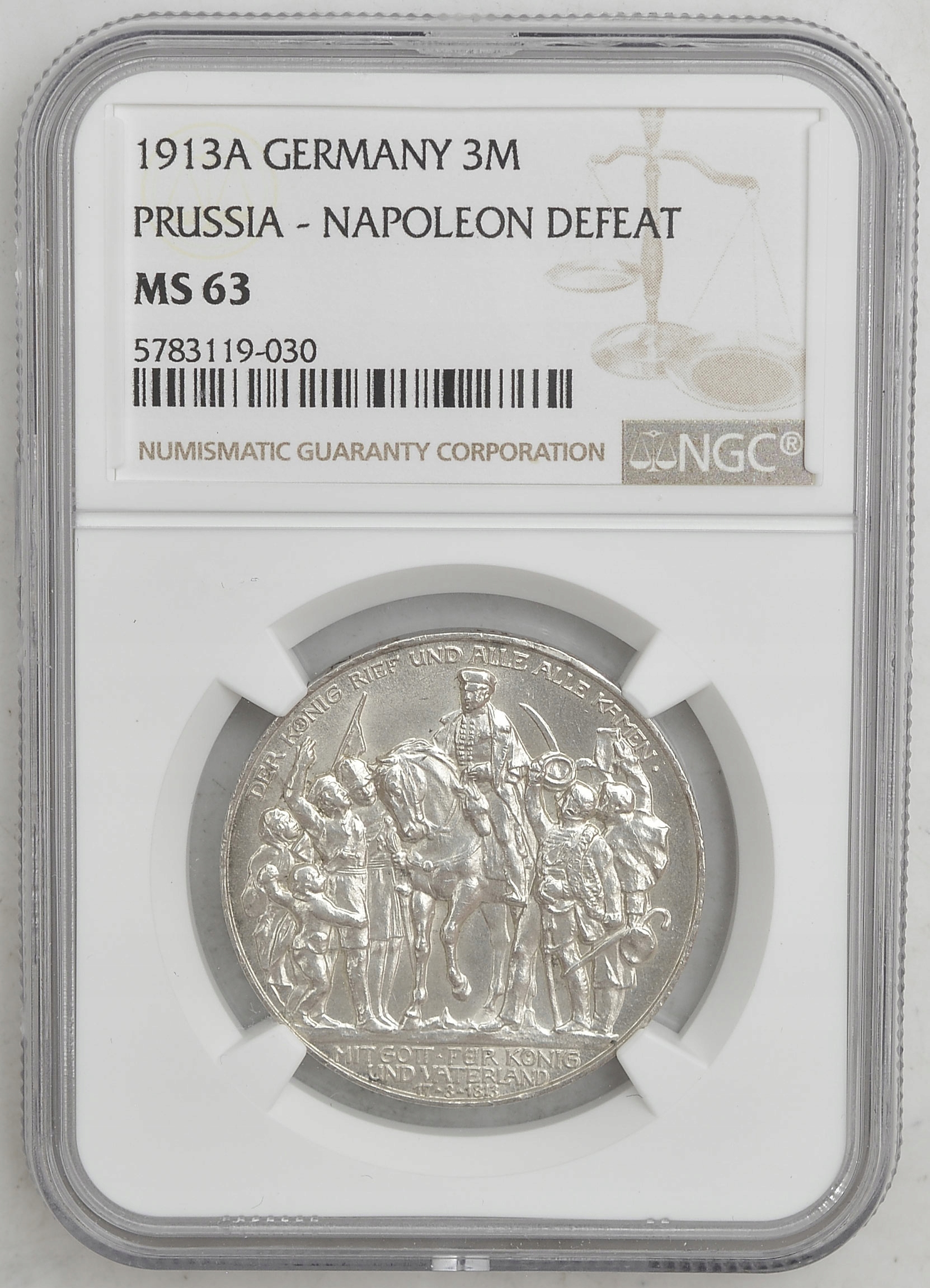 7.db.PRUSY , 3 MARKI 1913 100R.WEZWANIA.. NGC MS63