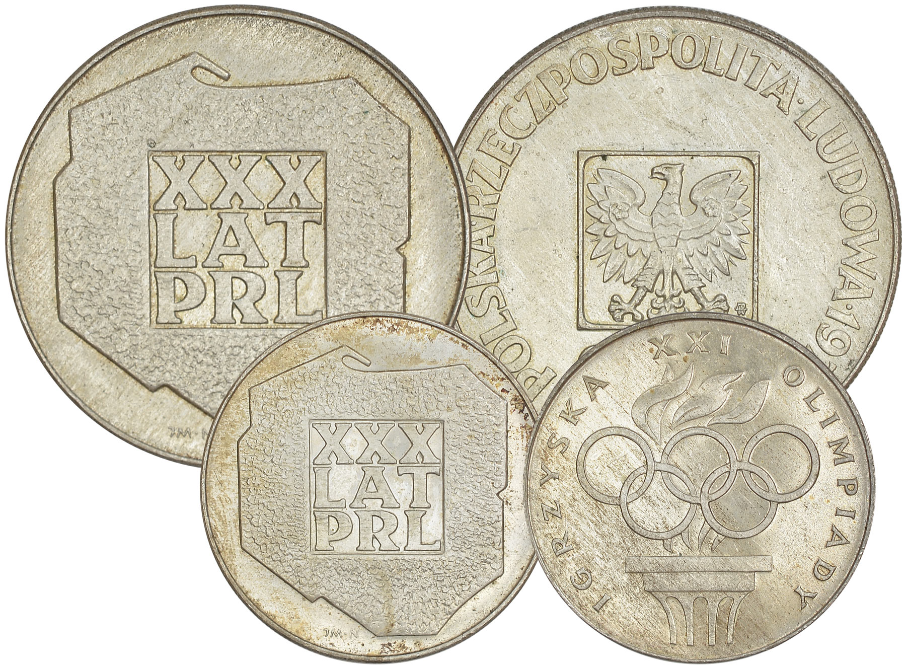 - Опис: НАБІР МОНЕТ 3 ШТ. . У набір входять монети з датами: 1974 MAPKA - XXX РОКІВ ПРЛ ПРЛ (2 штуки), 1976 ZNICZ - ІГРИ 21 ОЛІМПІАД. Патина. Монети в хорошому колекційному стані, з монетним дзеркалом. Рекомендую початківцям колекціонерам. Ідеально підходить для перепродажу або обміну.