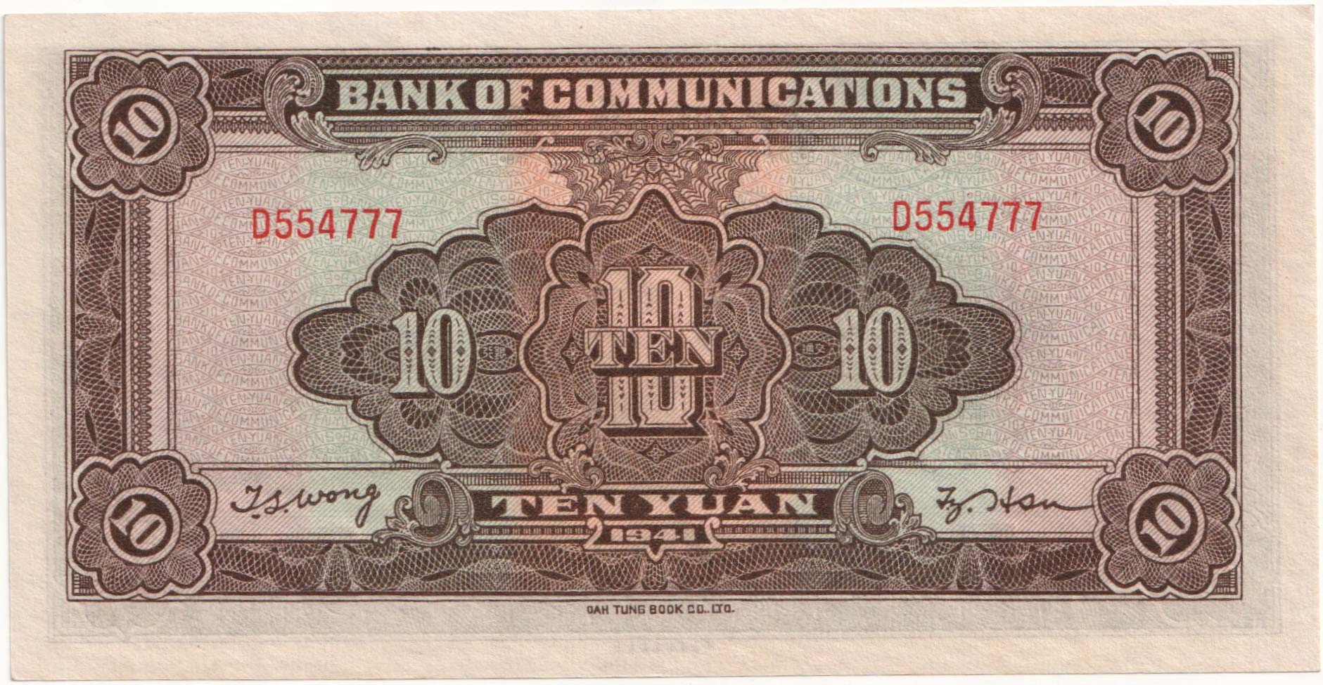 7.hw.Китай, 10 юанів 1941, P.159.a, St.1