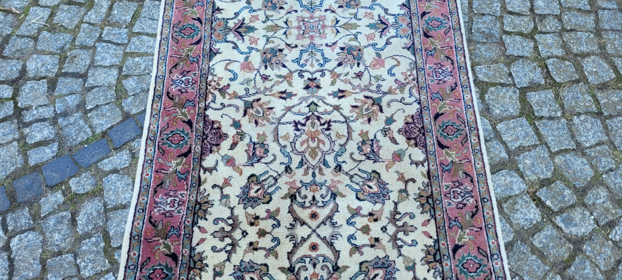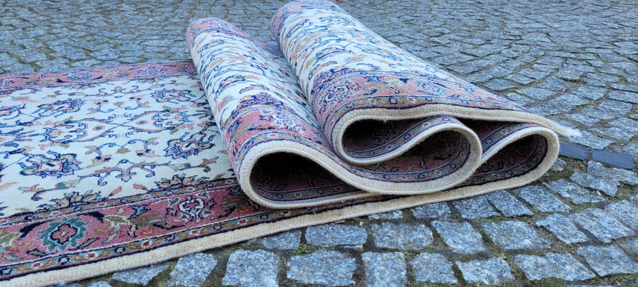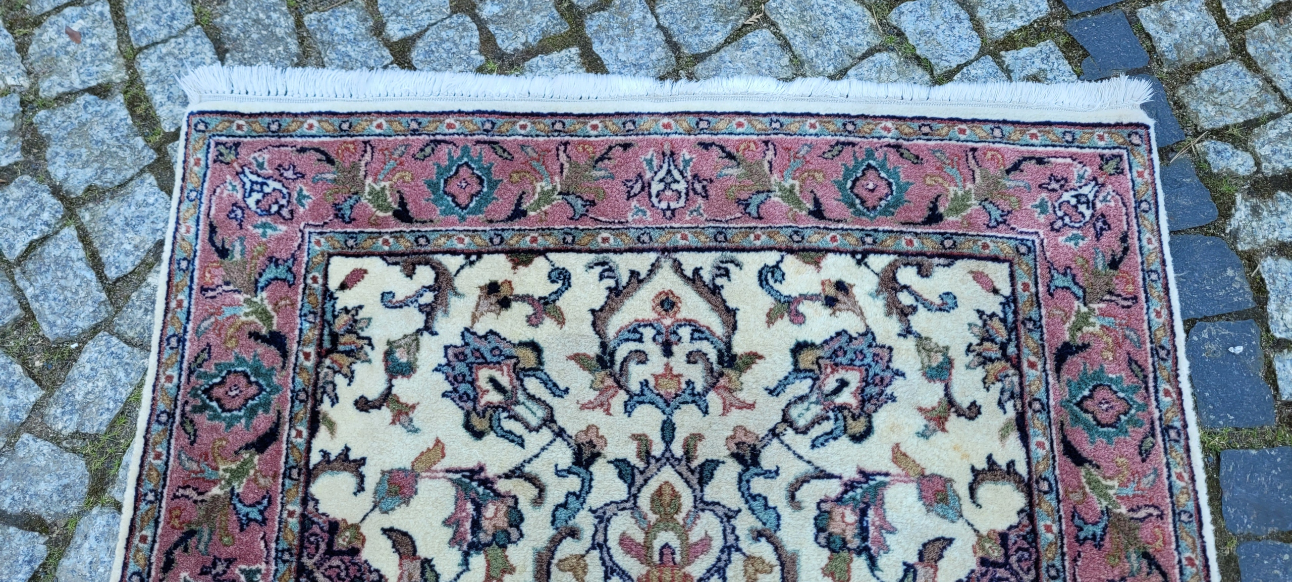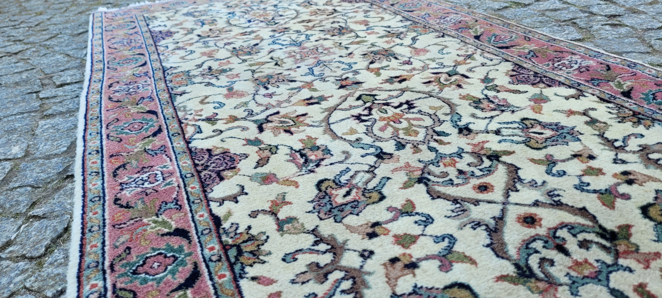 Перський килим. Ручне плетіння. Характеризується приємним на дотик, блискучим флісом і красивими кольорами та візерунками. У хорошому стані