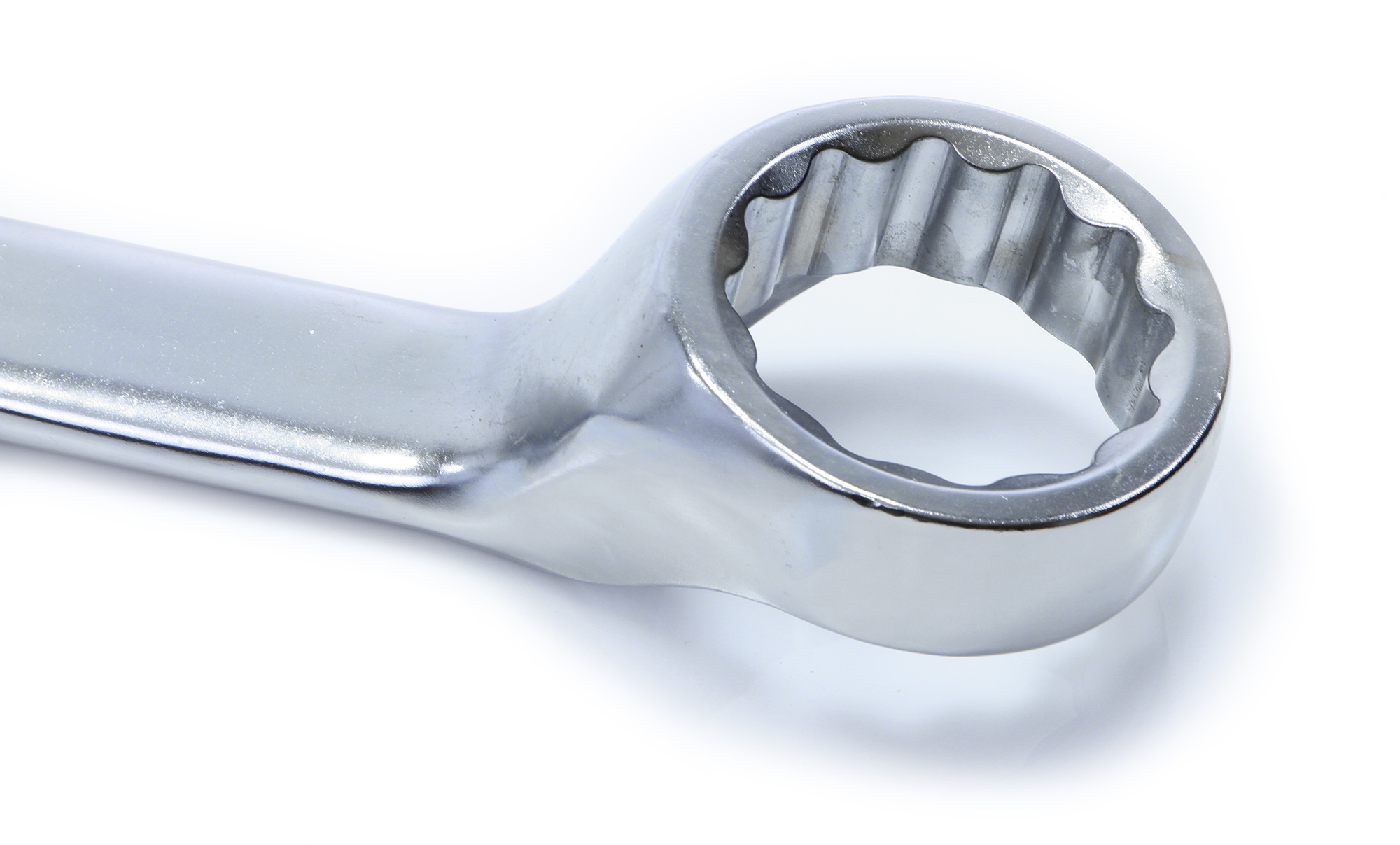 - 12-кутовий наконечник гайкового ключа має спеціальний профіль зубів, який збільшує максимальний момент затягування на 25% (без пошкодження гайки). Сатинова обробка зводить до мінімуму ковзання забруднених маслом клавіш