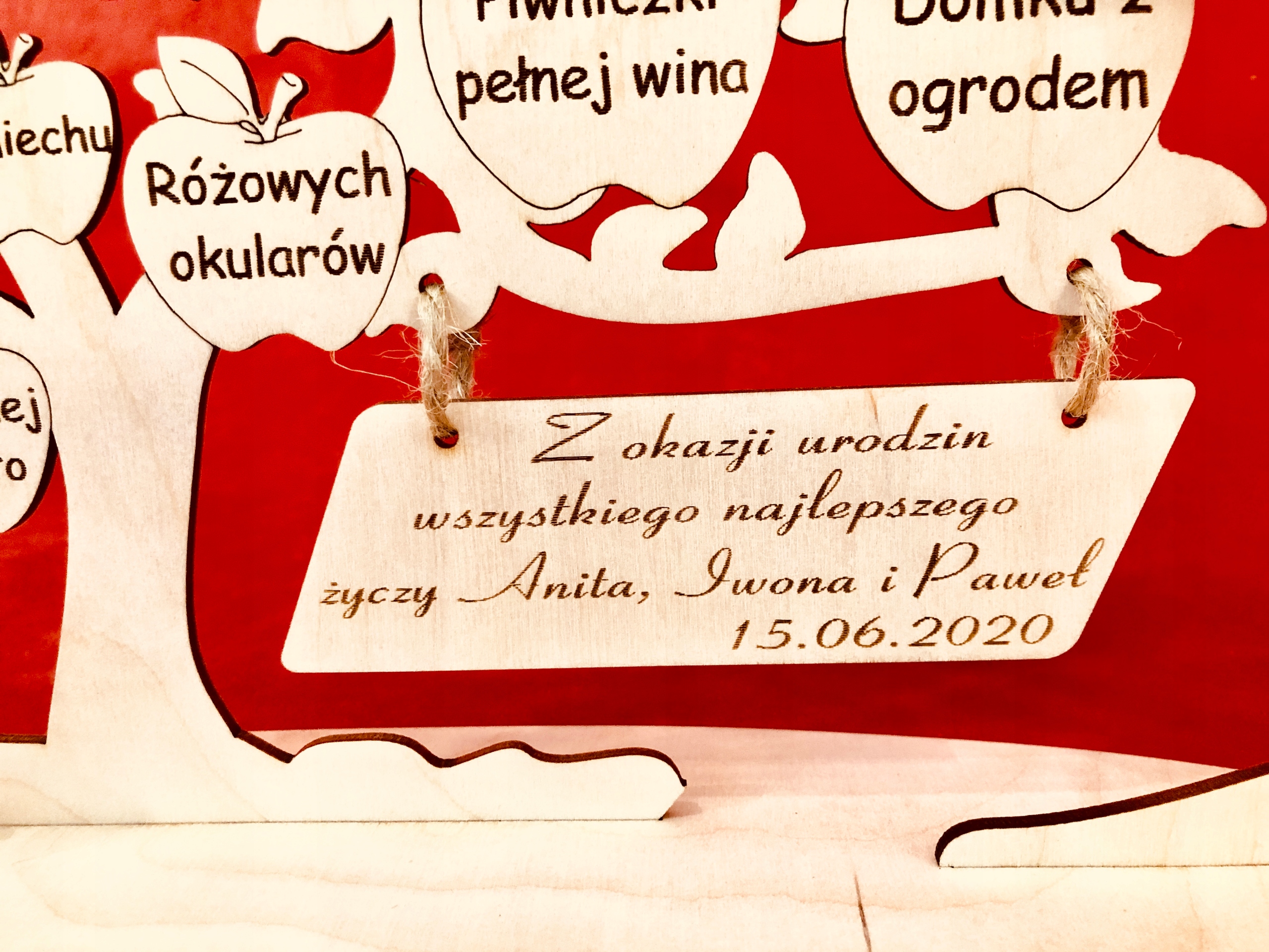 Подарунок на день народження у вигляді вигравіруваного дерева з побажаннями від нашої оригінальної студії гравіювання GRAWERNIADDZ.