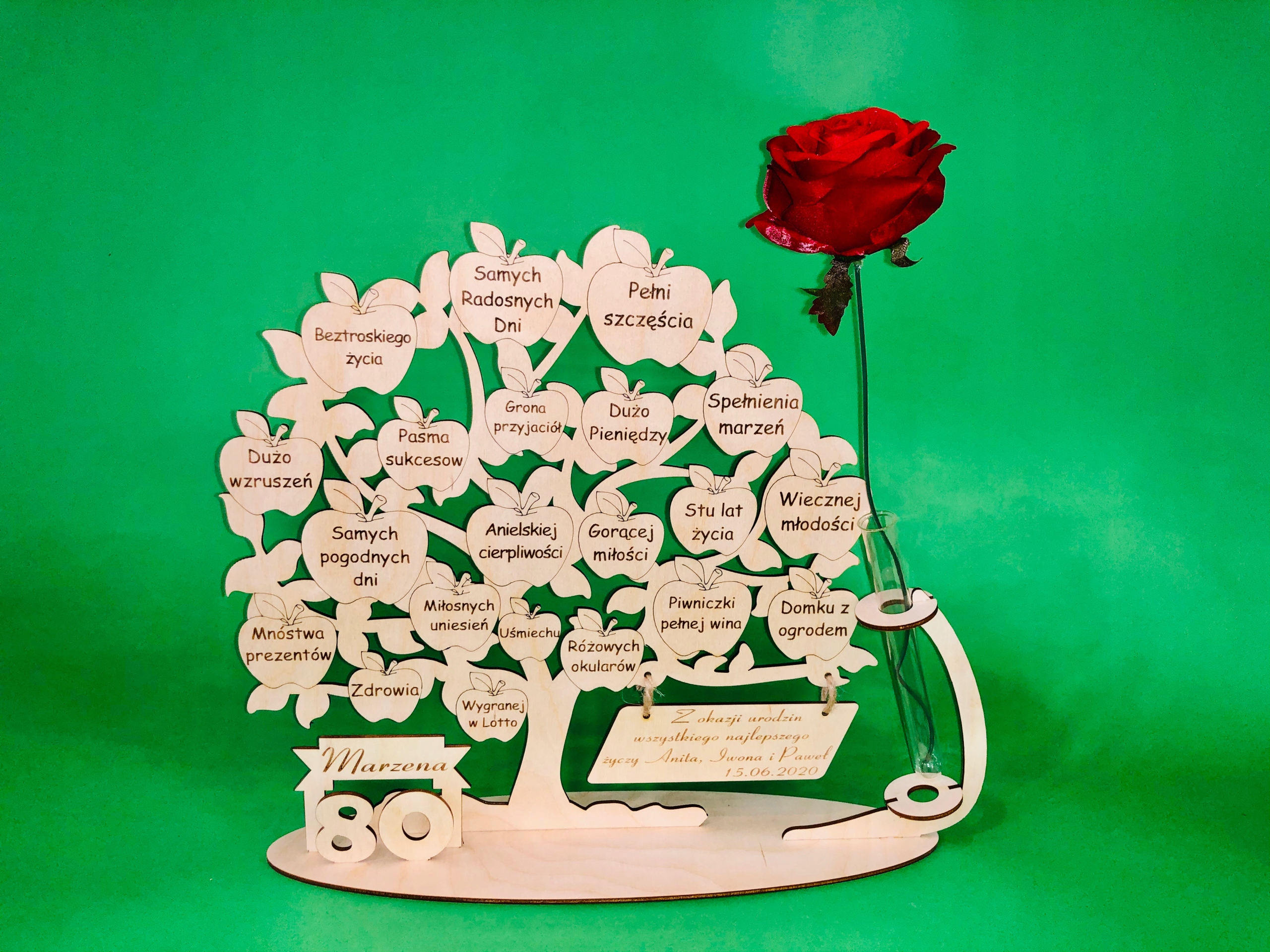 70-річчя, 80-річчя, дерево з гравіюванням