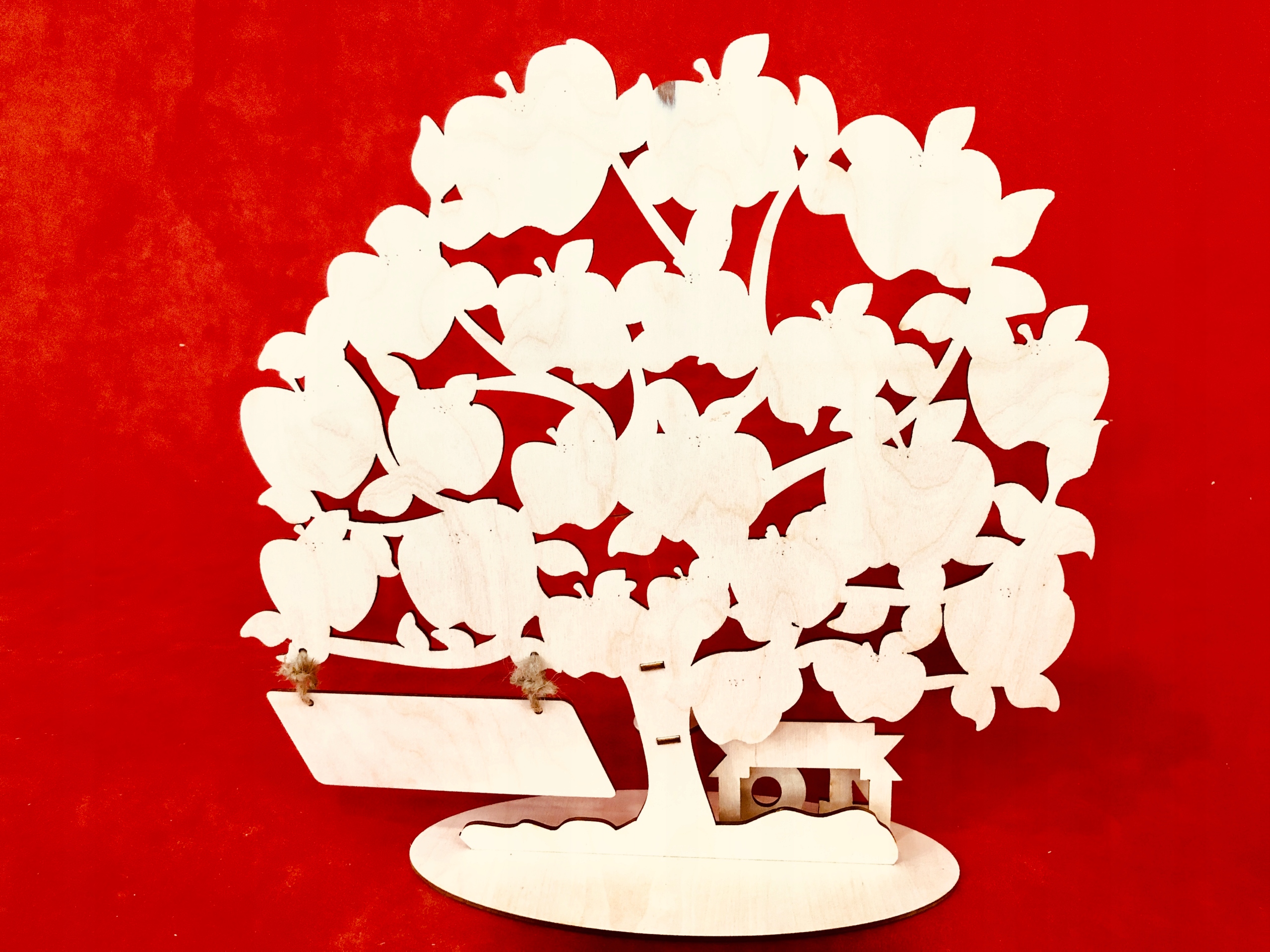 Гарно вирізана з фанери та вигравірувана ялинка з побажаннями для іменинника.