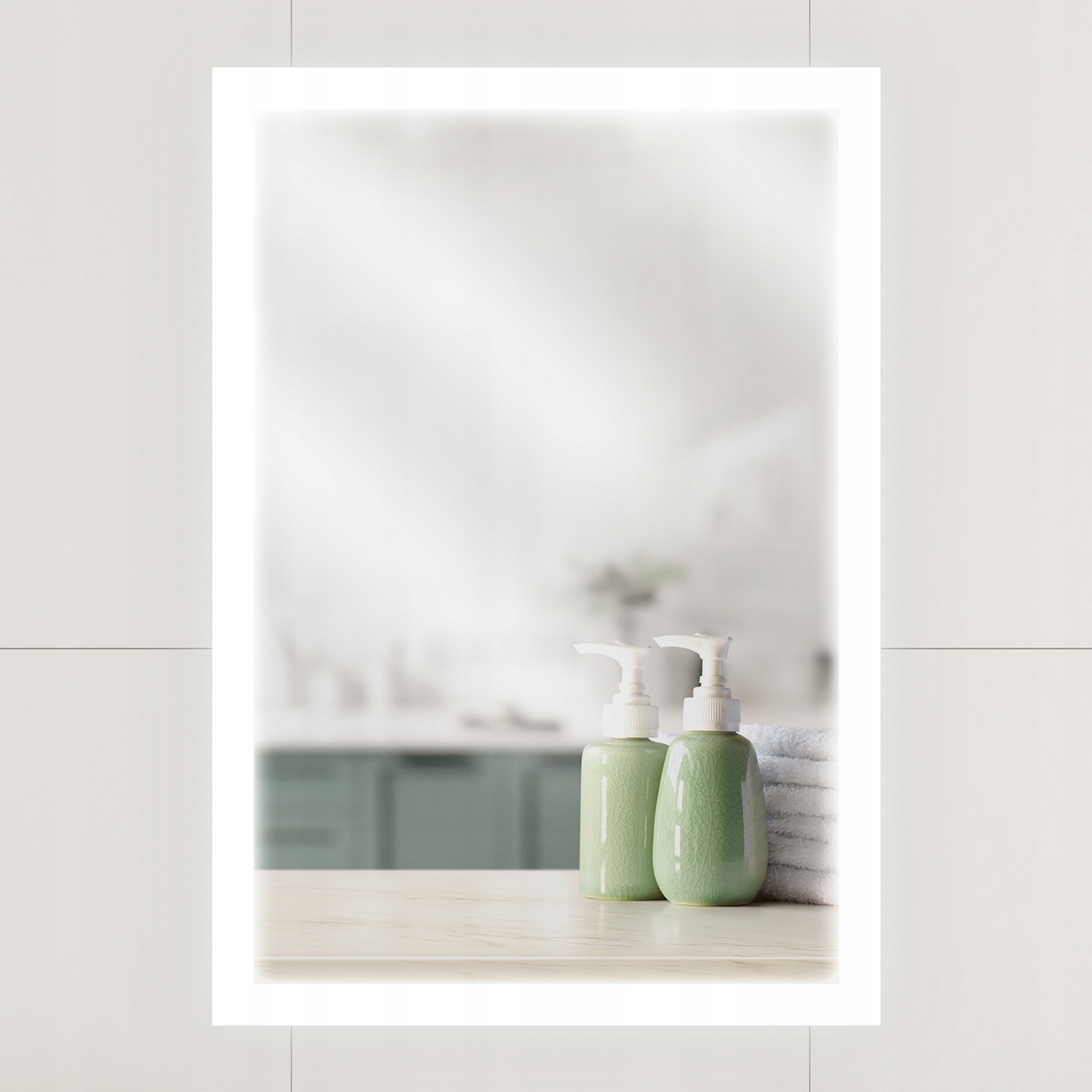 Сучасний світлодіодний виділений дзеркало 70x100 см, виготовлений із високоякісного скла з товщиною 4 мм. Відшліфовані та наземні краї. 4
