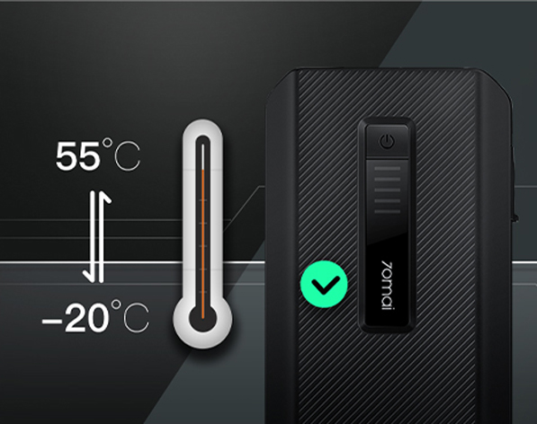 Компактний, зручний портативний стартер від 70mai використовує елементи Xiaomi. Полімерно-літієва батарея дозволяє працювати в широкому діапазоні температур від -20℃ до 60℃. Розширені заходи безпеки, також засновані на системах штучного інтелекту, забезпечують безпечне використання. Jump starter PS06 також є ефективним павербанком з індикатором рівня заряду та трифункціональним світлодіодним ліхтариком.