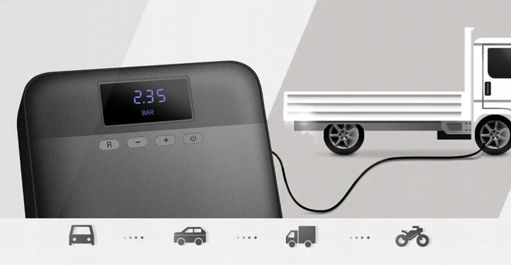Оснащений дисплеєм, що показує рівень повітря в колесах, і кнопками для його керування. Має автомобільну розетку та довгий кабель, тому ви можете використовувати його біля автомобіля. Додаткові насадки також дозволять накачати матрац або пляжні іграшки.