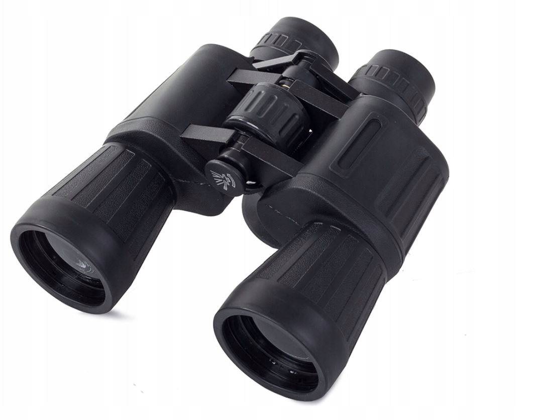 біноклі 10 x 50 чудово справляється під час поїздок, для спостереження за пейзажами, тваринами та спортивними змаганнями. Це працює в будь -яких погодних умовах. 4 Великі лінзи з діаметром 50 мм забезпечують найвищу якість. Біноклі мають корекцію дефекту зору в правому склі та регулювання фокусу, розташованого на мосту, між тубусом.