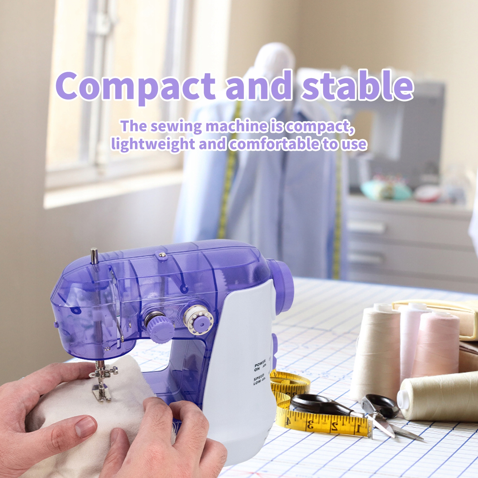 компактний та стабільний - швейна машина компактна, легка та зручна у використанні і важить лише один кілограм. Пристрій працює дуже тихо і не займає багато місця завдяки його невеликому розміру, його також легко переносити, тому ви можете взяти їх із собою, наприклад, у подорож або у відпустці. Машина оснащена нон -слизами на дні.