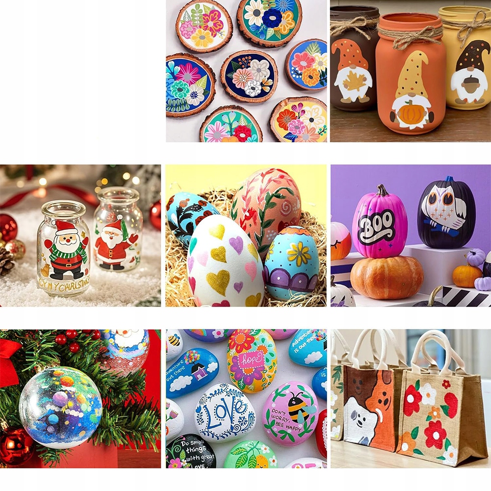🎨🎨 Яскраві акрилові кольори: Пориньте у вибух яскравих кольорів за допомогою наших акрилових ручок, створених для насиченої пігментації та чудового покриття. Незалежно від того, чи шукаєте ви матеріали для наскального малювання чи працюєте на папері, полотні, дереві чи будь-якому іншому, ці акрилові маркери виділять ваші твори мистецтва вражаючим блиском.