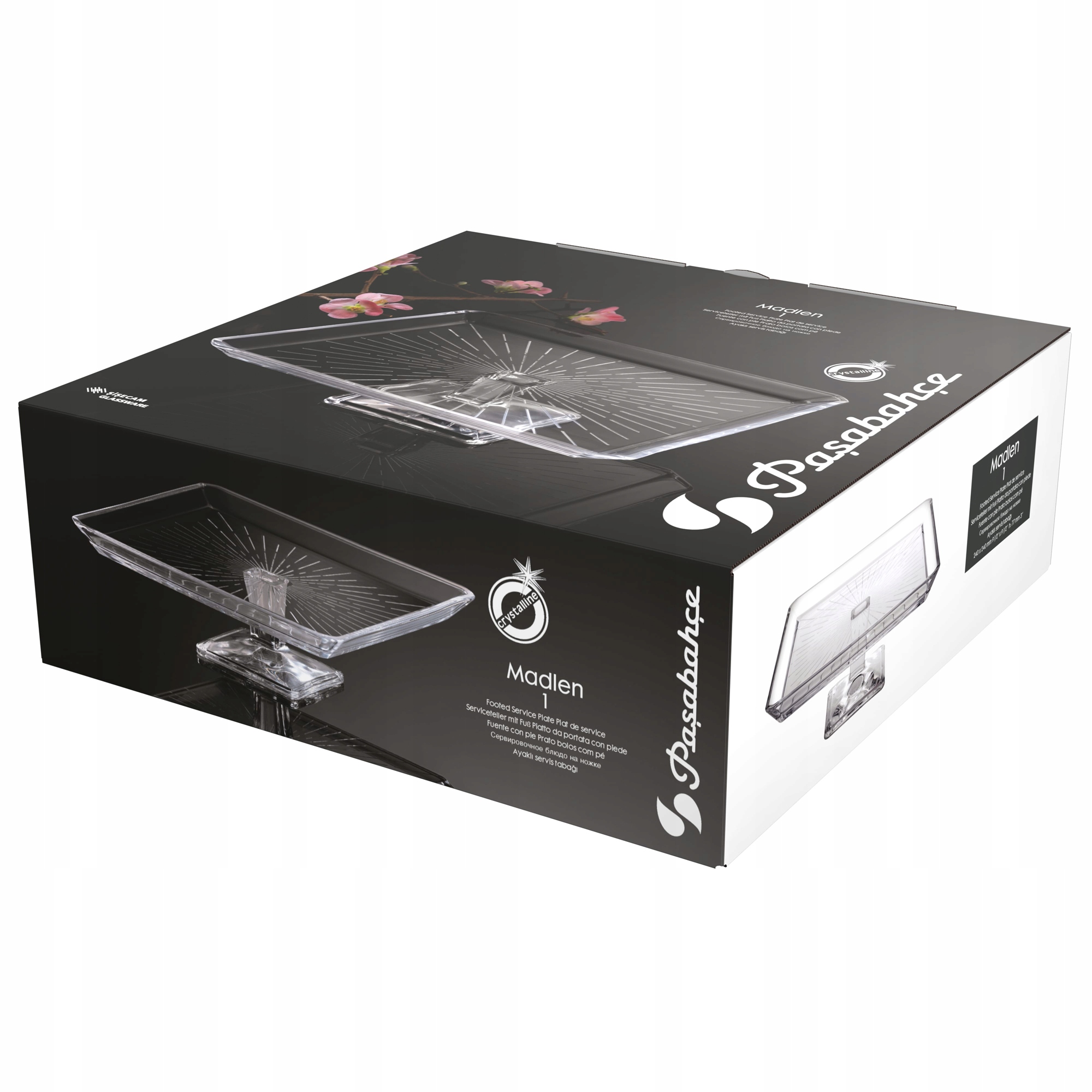 квадратна тарілка на нозі Мадлен в сучасному стилі. Він чудово підходить для відображення фруктів, тортів, тортів та інших випічок. Він має гладку поверхню, що значно полегшує миття.