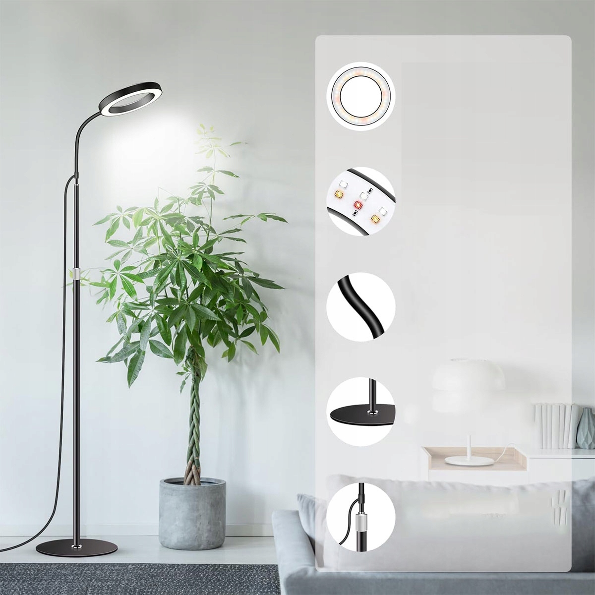 ➡Ця лампа для вирощування складається з 72 світлодіодів і збагачена напівпрозорим кільцевим абажуром, який забезпечує кращу пропускання світла. Основа являє собою міцну металеву основу діаметром Φ 20 см з бавовняною підкладкою, що забезпечує стійкість і протиковзкі властивості. Гусяча шия та телескопічна жердина дають вам свободу регулювати потрібний кут і висоту з настройками висоти від 23 до 67 дюймів (58 до 170 см) для розміщення різноманітних великих рослин!