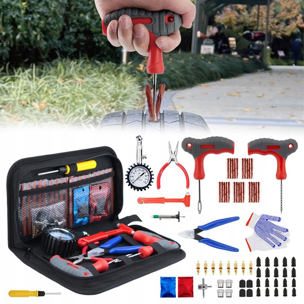 【Набір для екстреного ремонту спущеної шини】 Цей набір для ремонту шин швидко поверне вас на дорогу у разі проколу. Підходить для безкамерних шин на легкових автомобілях, позашляховиках, мотоциклах, ендуро та газонокосарках.