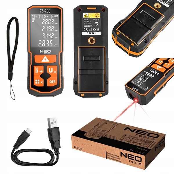 лазерний діапазон, 75-206, neo neo лазерний діапазон (посилання 75-203)-високоякісний пристрій, що використовується для вимірювання відстані, поверхневих полів, об'єму. Функції RangeFinder дозволяють проводити непрямі вимірювання (використовуючи теорему Піфагора) та постійні вимірювання додавання та віднімання, максимального та мінімального вимірювання, здатність вимірювати з самого початку, засоби та кінець пристрою. Крім того, пристрій оснащений автоматичним рівнем, який дозволяє прочитати кут положення пристрою на постійній основі. Має пам’ять про останні 30 вимірювань. Максимальний діапазон пристрою становить від 0,05 до 100 м, а точність вимірювання +/- 2 мм. Продукт корисний для будівництва, геодезії, технічних проектів та вдома. Пристрій має клас жорсткості IP54. Діапазон оснащений чітким екраном і має регульований гучність. Працює: 2xaa ni-mh батареї, або 2 лужні батареї AA. Продукт має сертифікат CE. Бренд NEO відповідає очікуванням професіоналів.