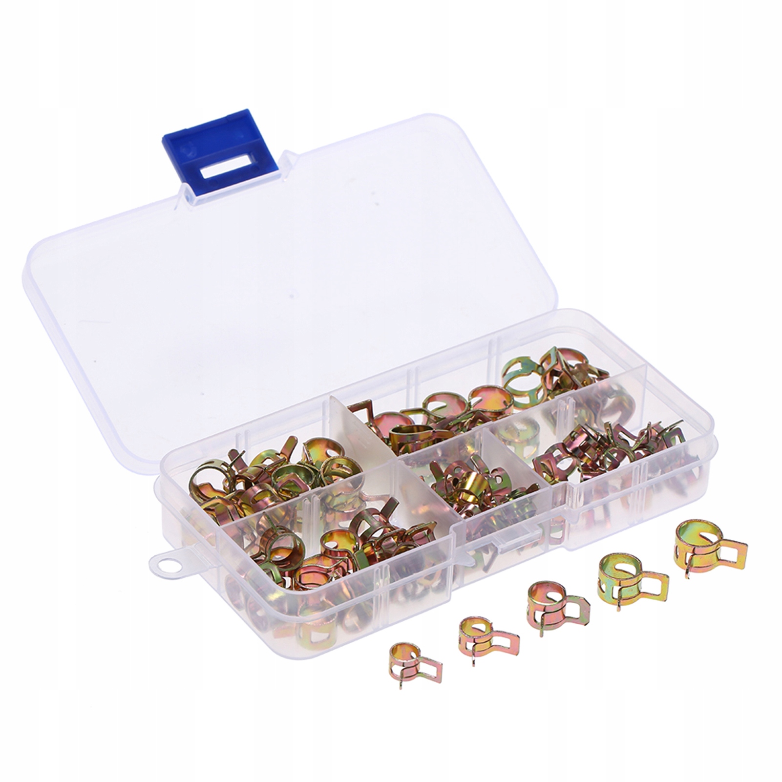 - Всього 75 шт. пружинних затискачів у 5 різних розмірах (внутрішній діаметр: 6 мм, 7 мм, 8 мм, 9 мм, 10 мм), що відповідають вашим різним потреби.